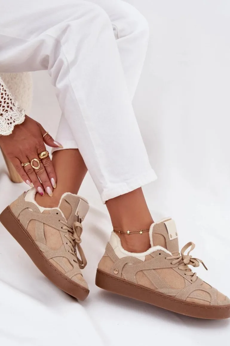 Sneakersy damskie wykonane z eko zamszu to idealna propozycja na chłodniejsze dni. Wnętrze butów zostało ocieplane miękkim futerkiem, zapewniając ciepło i przyjemność noszenia. Delikatna platforma nie tylko dodaje wysokości, ale również gwarantuje wygodę przez cały dzień. Te sneakersy to świetny wybór do casualowych stylizacji. Przy wyborze rozmiaru prosimy kierować się tabelą rozmiarów.