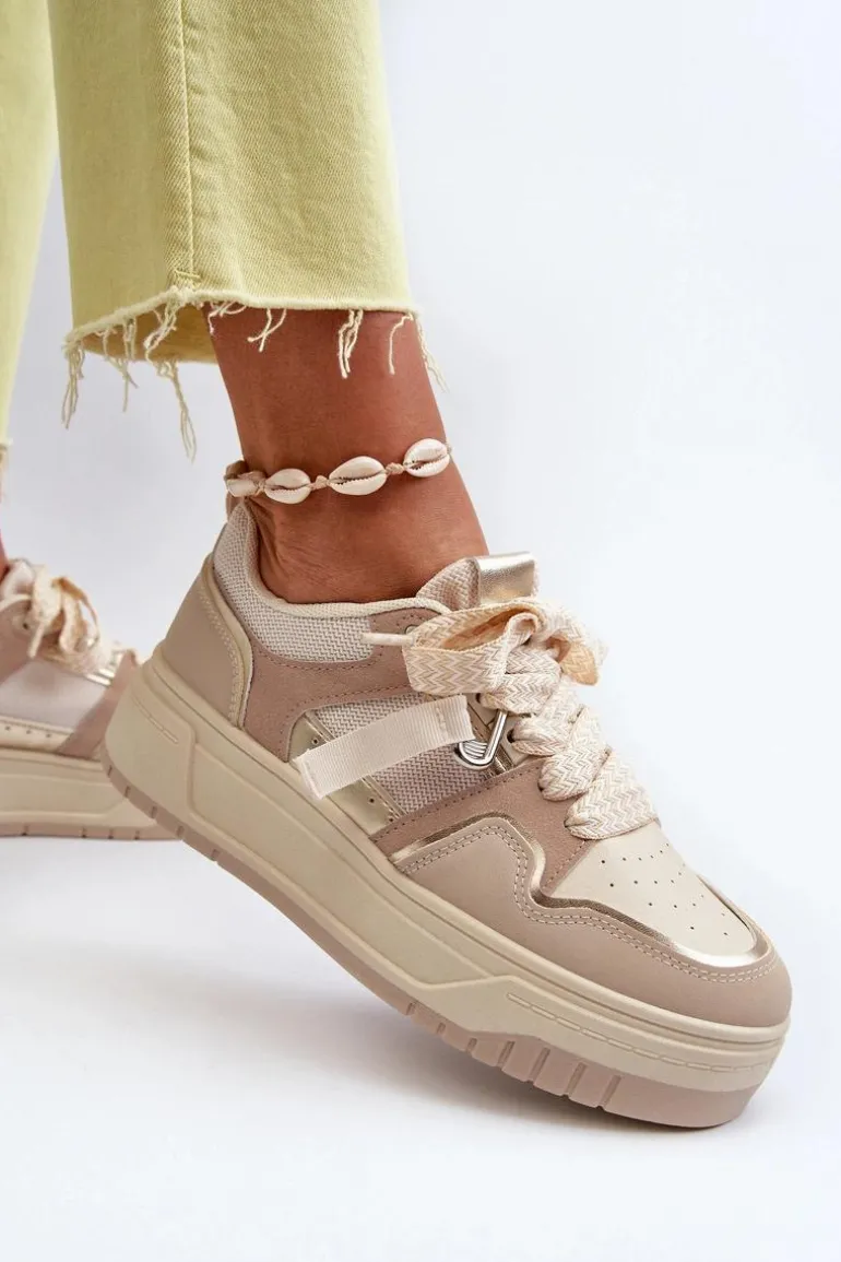 Sneakersy damskie na platformie wykonane z eko skóry. Modny fason sprawia, że są doskonałym wyborem na każdą okazję. Dodatkowo platforma dodaje im niepowtarzalnego stylu, który wyróżni Cię z tłumu! Przy wyborze rozmiaru prosimy kierować się tabelą rozmiarów.