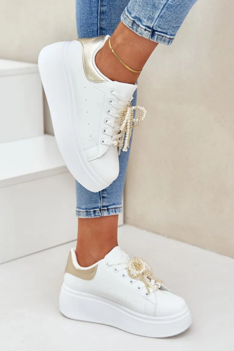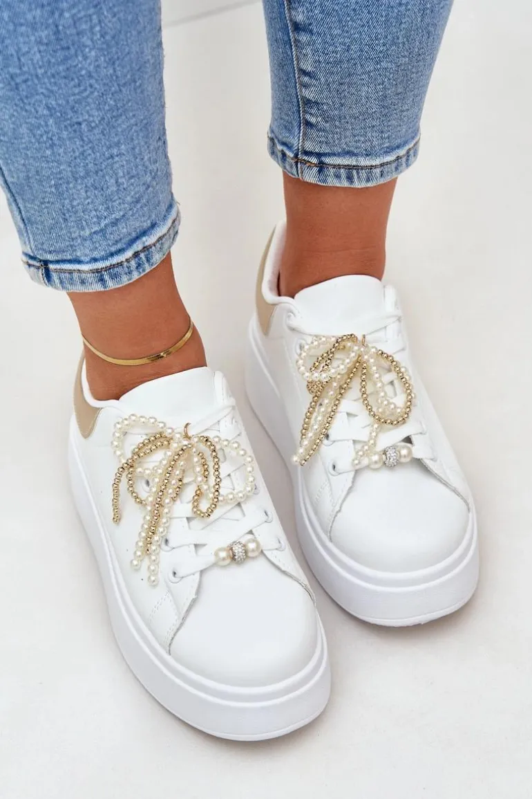 Damskie sneakersy wykonane z eko skóry. Osadzone na platformie. Ozdobione przypinkami na sznurowaniu, które wprowadzają modny akcent. Ten model jest doskonałym rozwiązaniem dla kobiet, które poszukują nie tylko stylu, ale również komfortu i wyjątkowości. Przy wyborze rozmiaru prosimy kierować się tabelą rozmiarów.