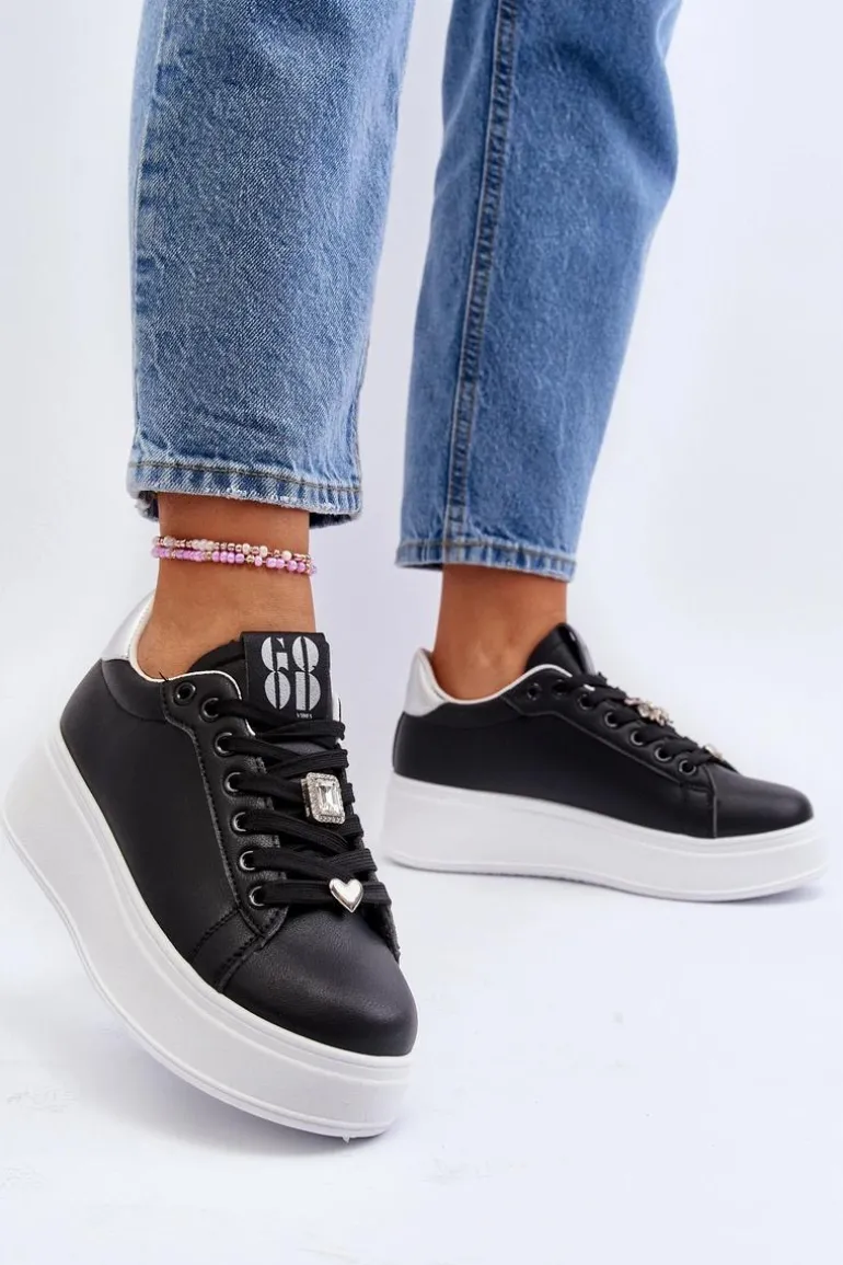 Sneakersy Damskie Na Platformie Z Ozdobami Czarne Herbisa