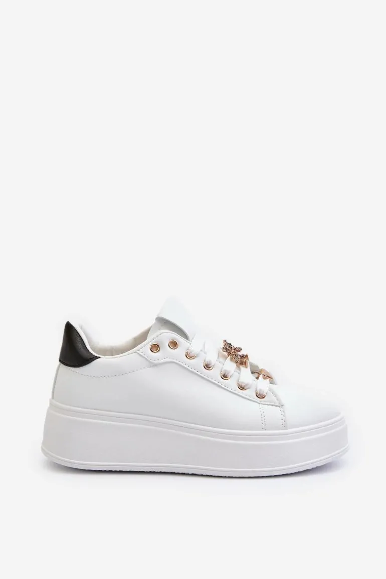 Sneakersy damskie wykonane z eko skóry. Osadzone na platformie, która nie tylko nadaje stylu, ale także zapewnia wygodę podczas noszenia. Dodatkowo modne przypinki nadają im unikalnego uroku. Idealne dla kobiet, które cenią sobie styl i komfort! Przy wyborze rozmiaru prosimy kierować tabelą rozmiarów.