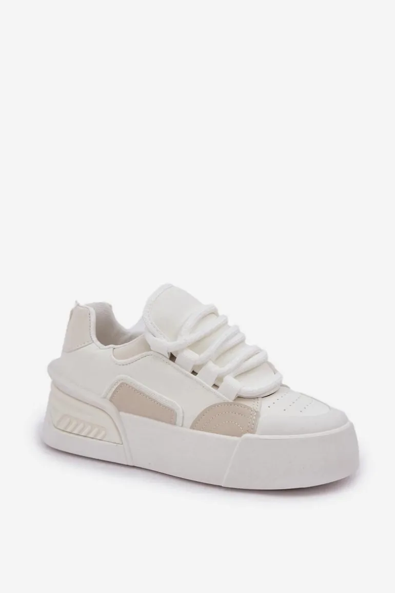 Sneakersy damskie wykonane z eko skóry. Osadzone na platformie, dodają sylwetce kilku centymetrów i zapewniają modny wygląd. Zaokrąglone noski nadają im klasycznego charakteru, a grube sznurówki stanowią ciekawy akcent. Wyjmowana, piankowa wkładka gwarantuje komfort noszenia przez cały dzień. Model ten idealnie dopełni casualowe stylizacje. Przy wyborze rozmiaru prosimy kierować się tabelą rozmiarów.