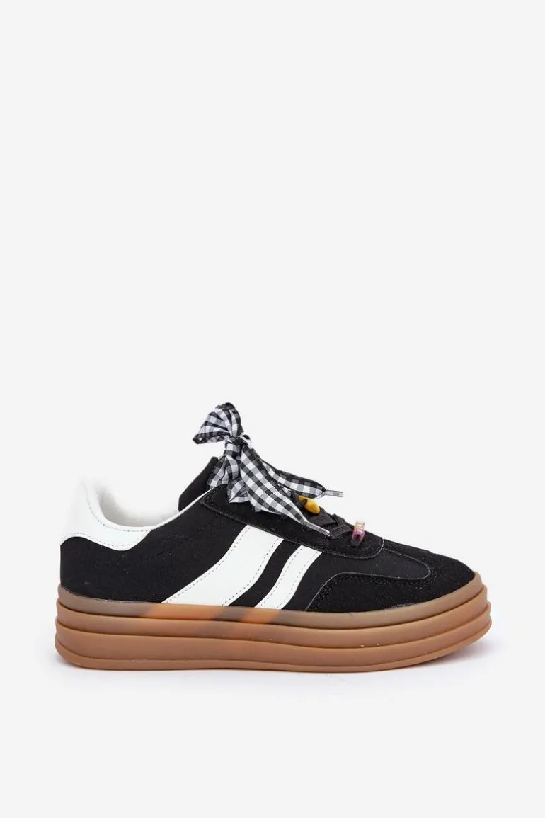 Sneakersy Damskie Z Przypinkami Czarne Jariana