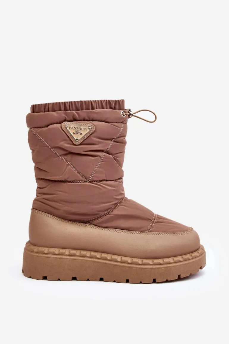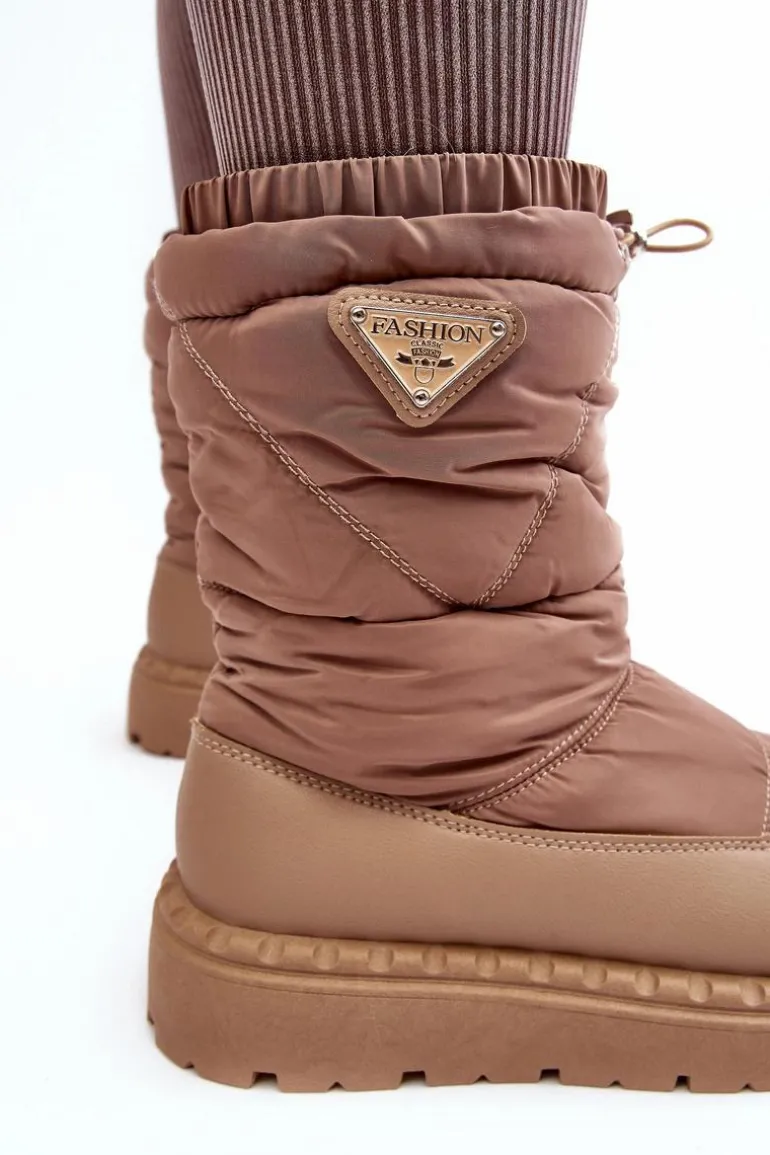 Śniegowce Damskie Na Grubej Podeszwie Ciemnobeżowe Lureta