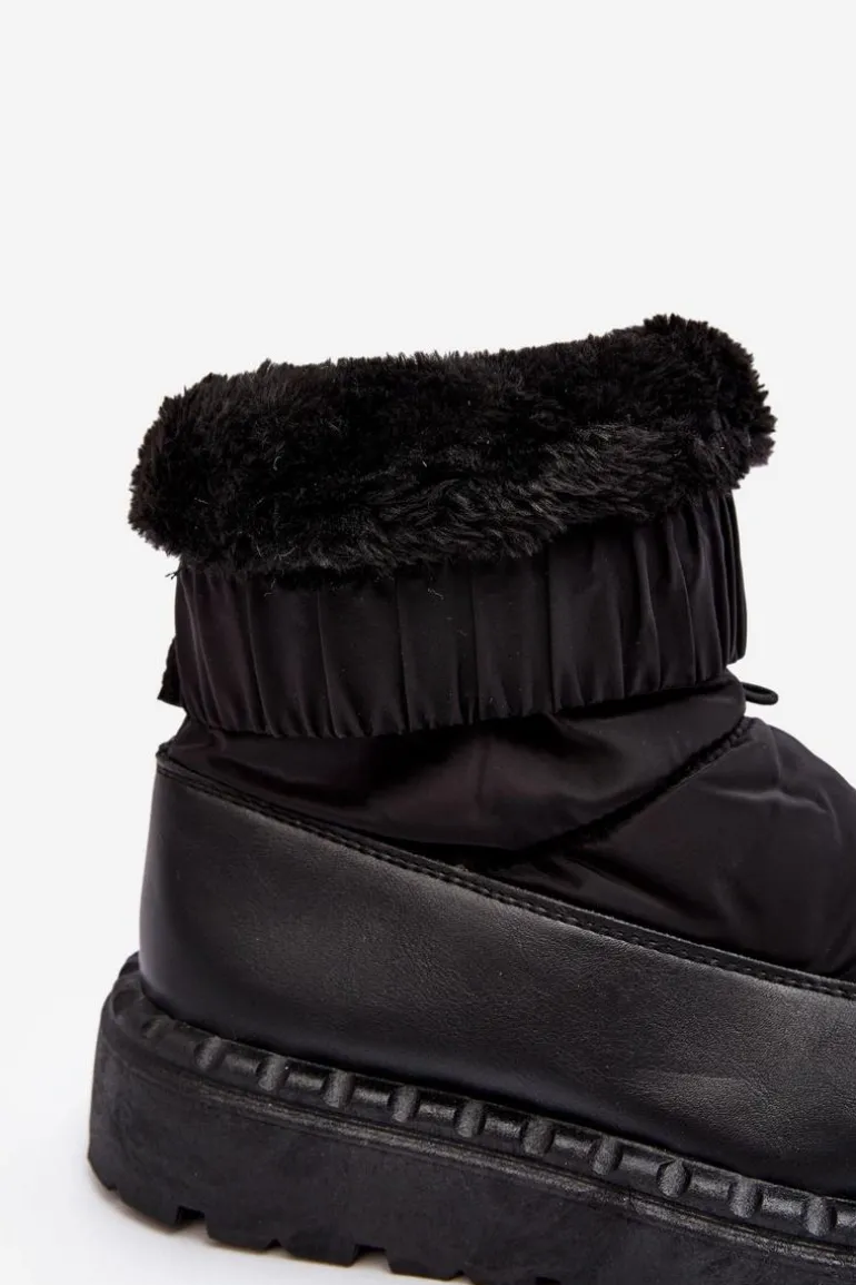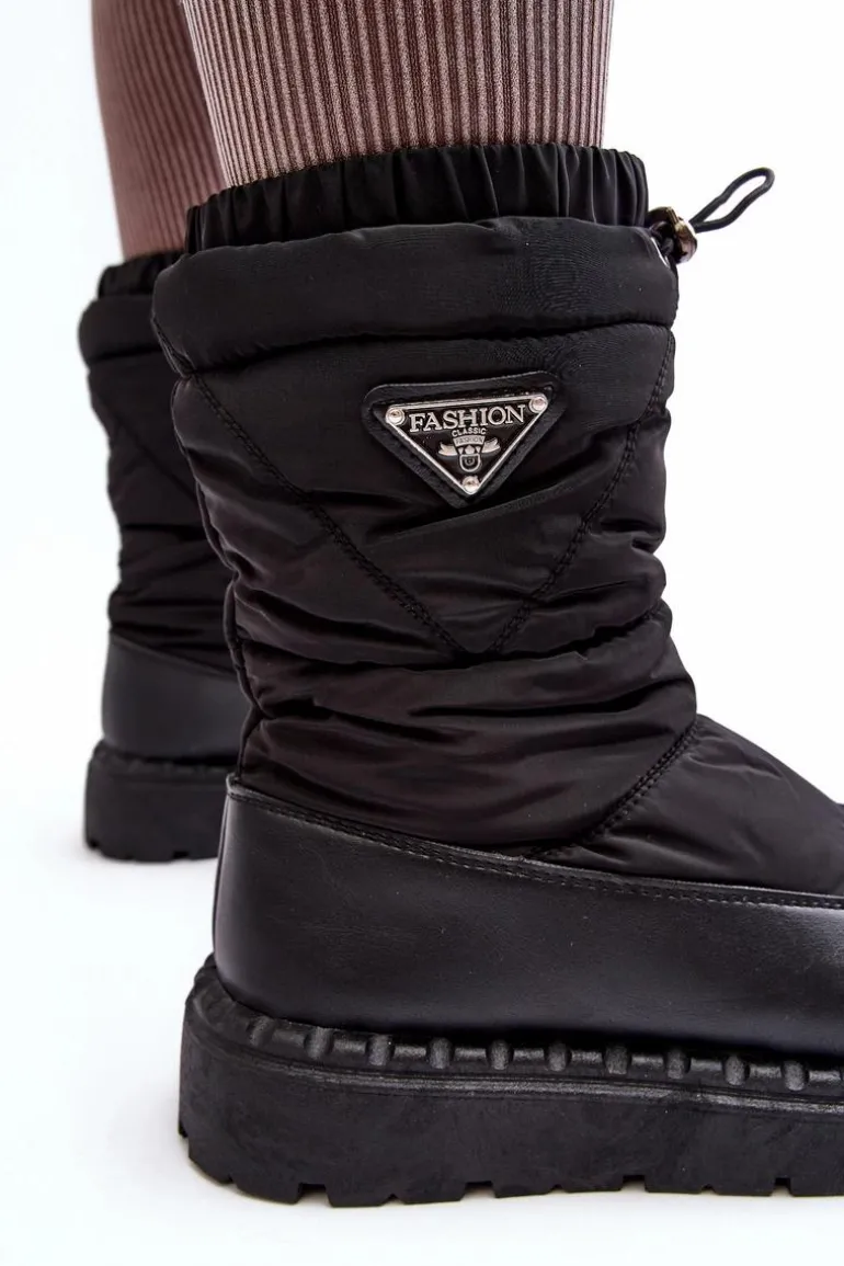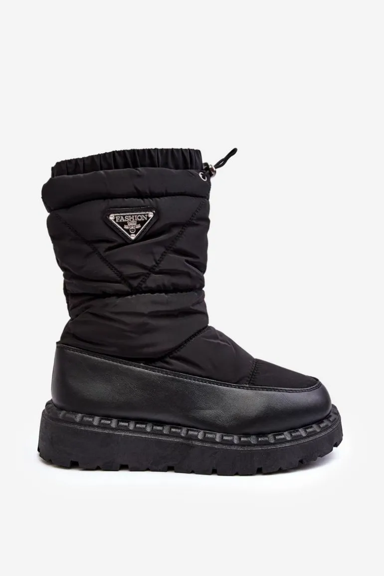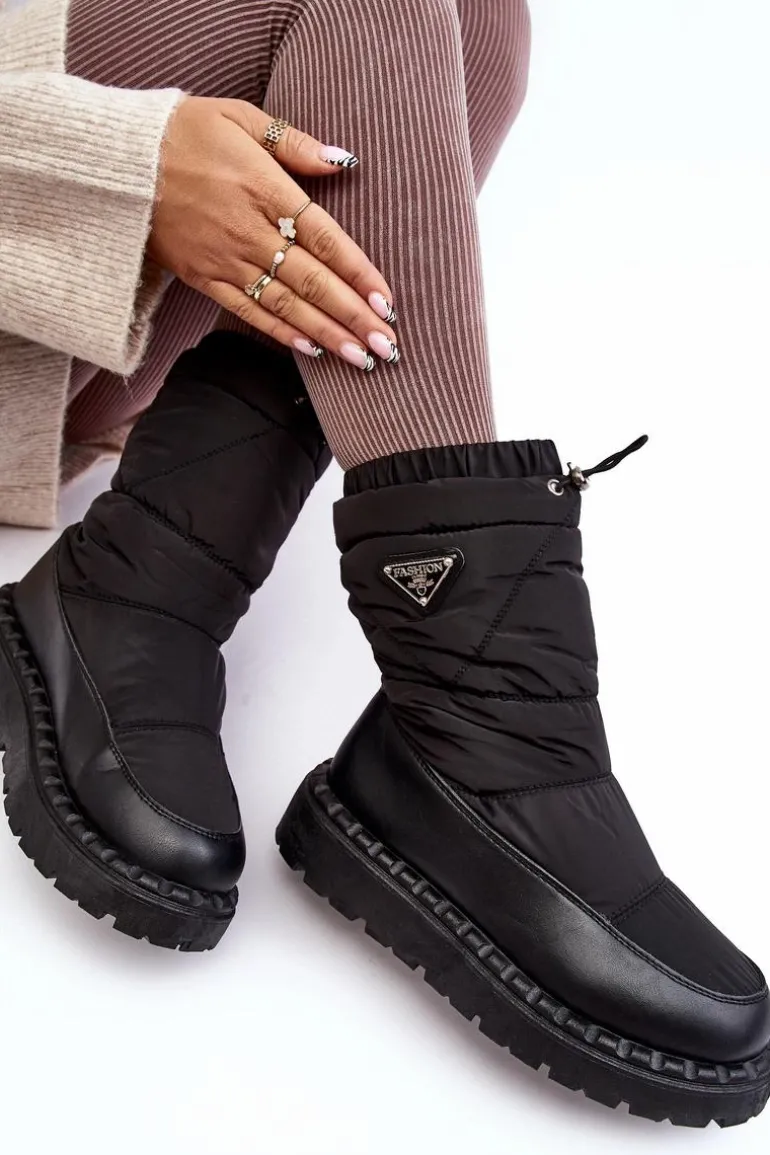 Śniegowce damskie osadzone na grubej podeszwie z gumowego tworzywa. Wykonane z połączenia eko skóry i materiału tekstylnego. Środek ocieplony grubym futerkiem. Na górze cholewki ściągacz. Idealne na mroźne dni! Koniecznie powinnaś je mieć! Przy wyborze rozmiaru prosimy sugerować się tabelą rozmiarów.