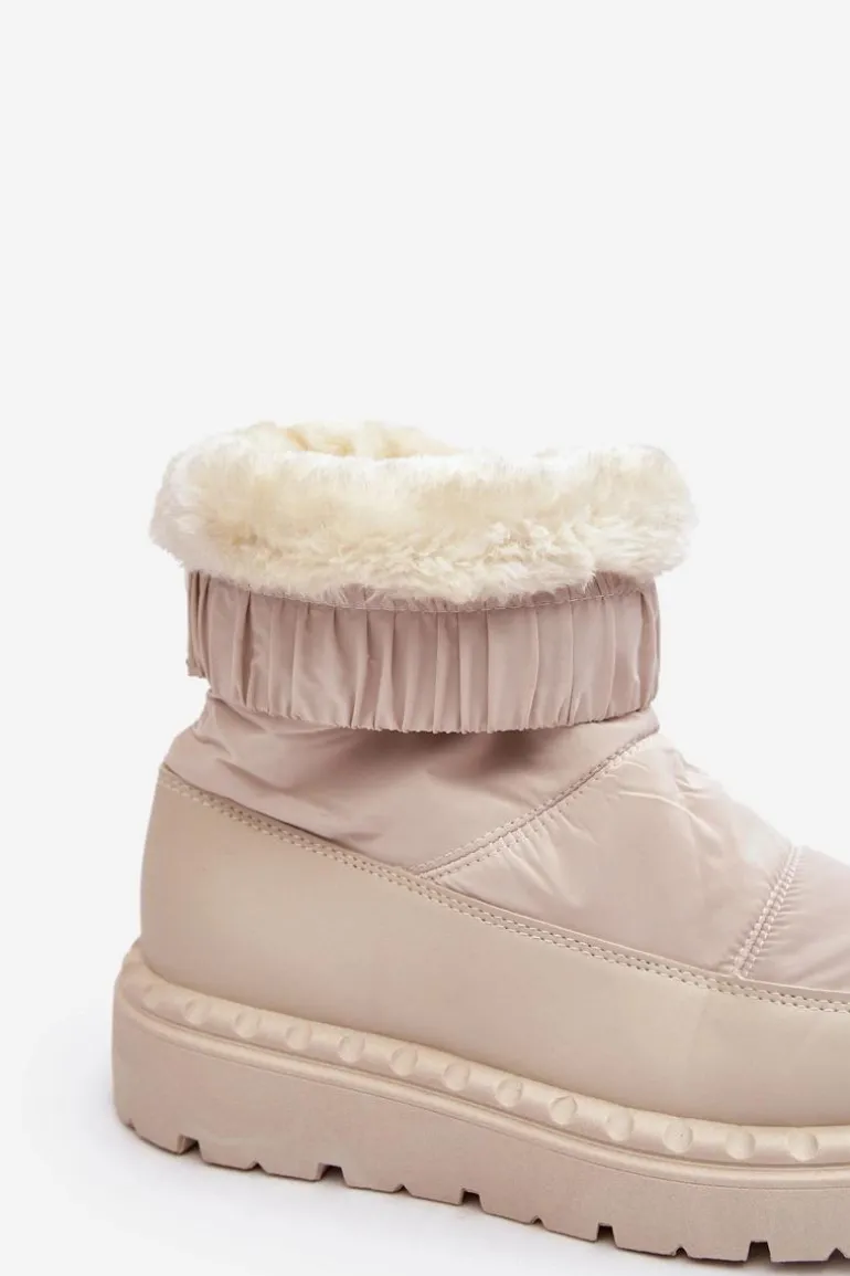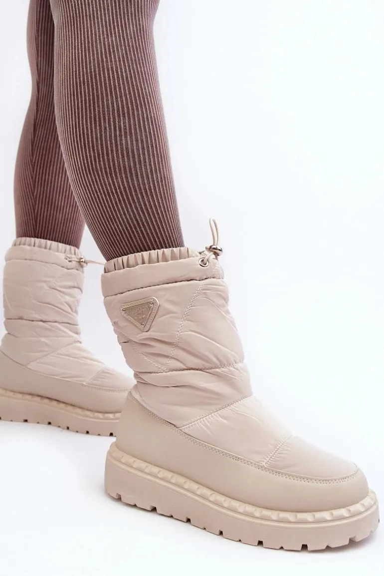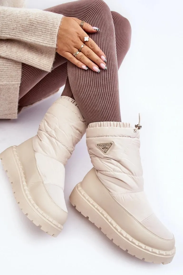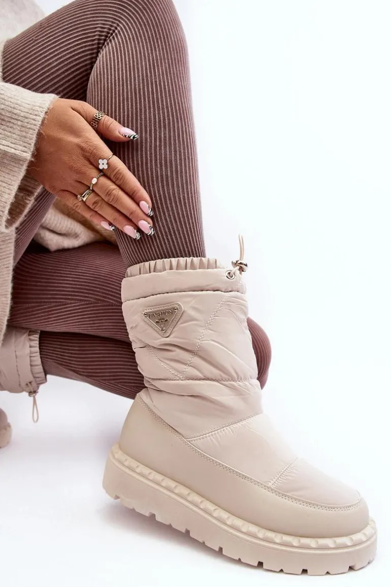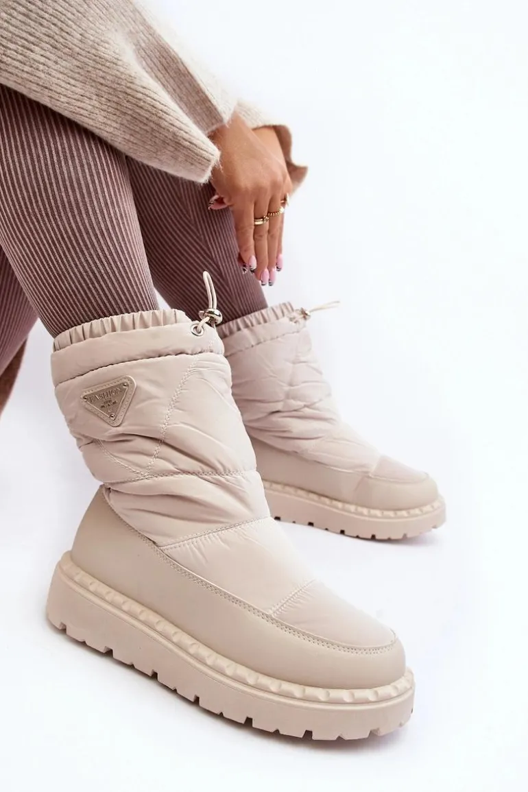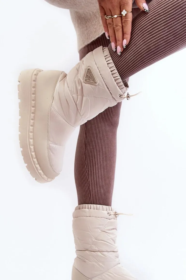 Śniegowce Damskie Na Grubej Podeszwie Jasnobeżowe Lureta