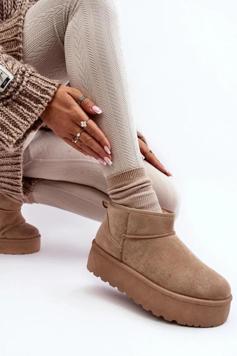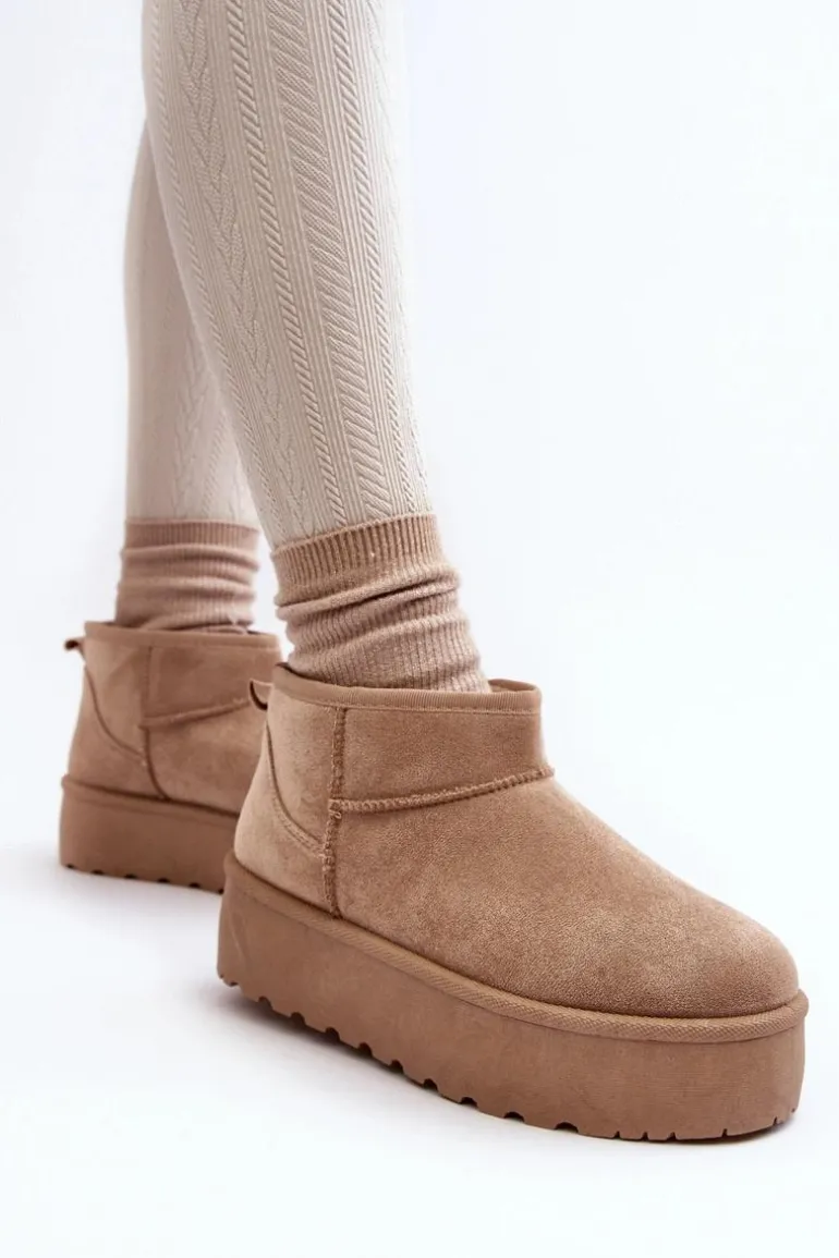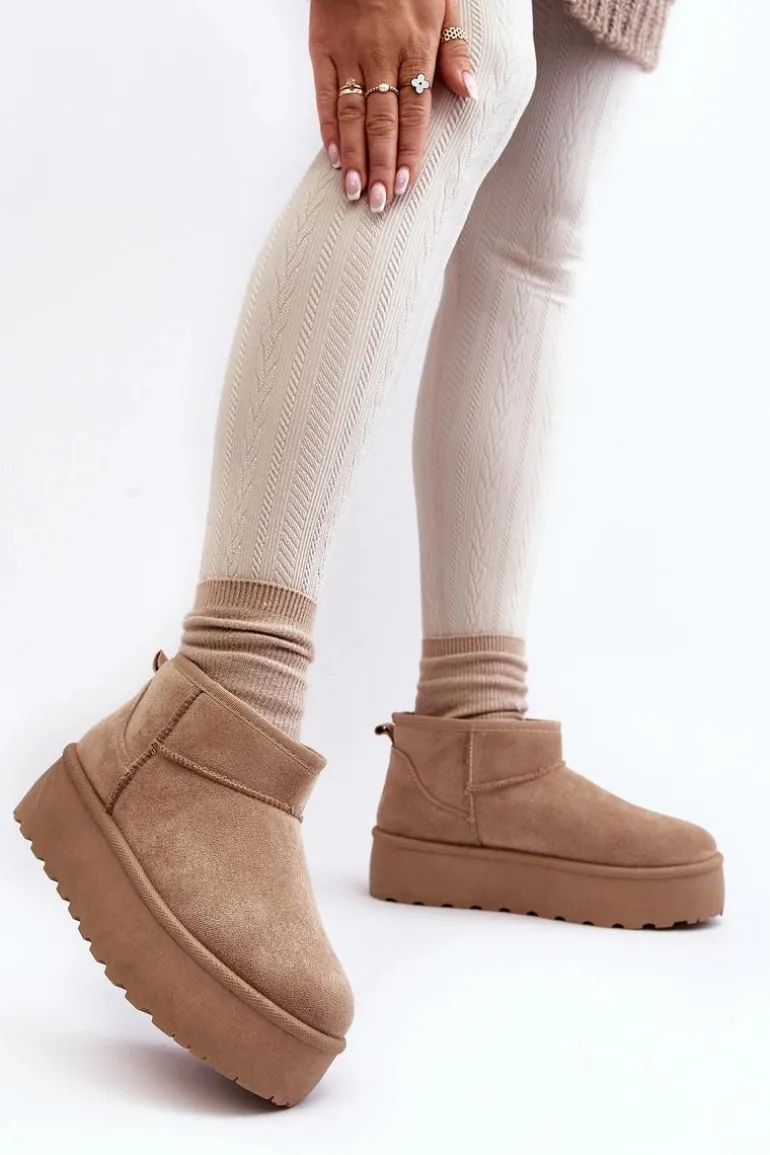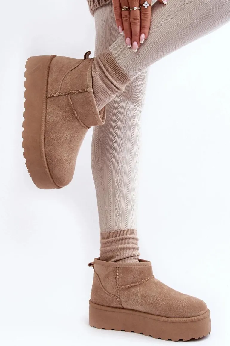 Śniegowce damskie osadzona na grubej platformie, która świetnie odizoluje od zimnego podłoża. Wykonane z eko zamszu. Środek ocieplony futerkiem. Cholewka za kostkę. Ten modny model dopasujesz do wielu jesienno-zimowych stylizacji! Przy wyborze rozmiaru prosimy sugerować się tabelą rozmiarów.