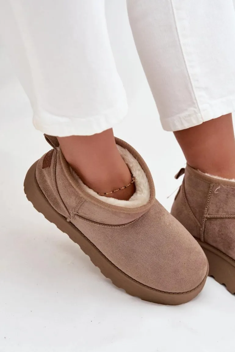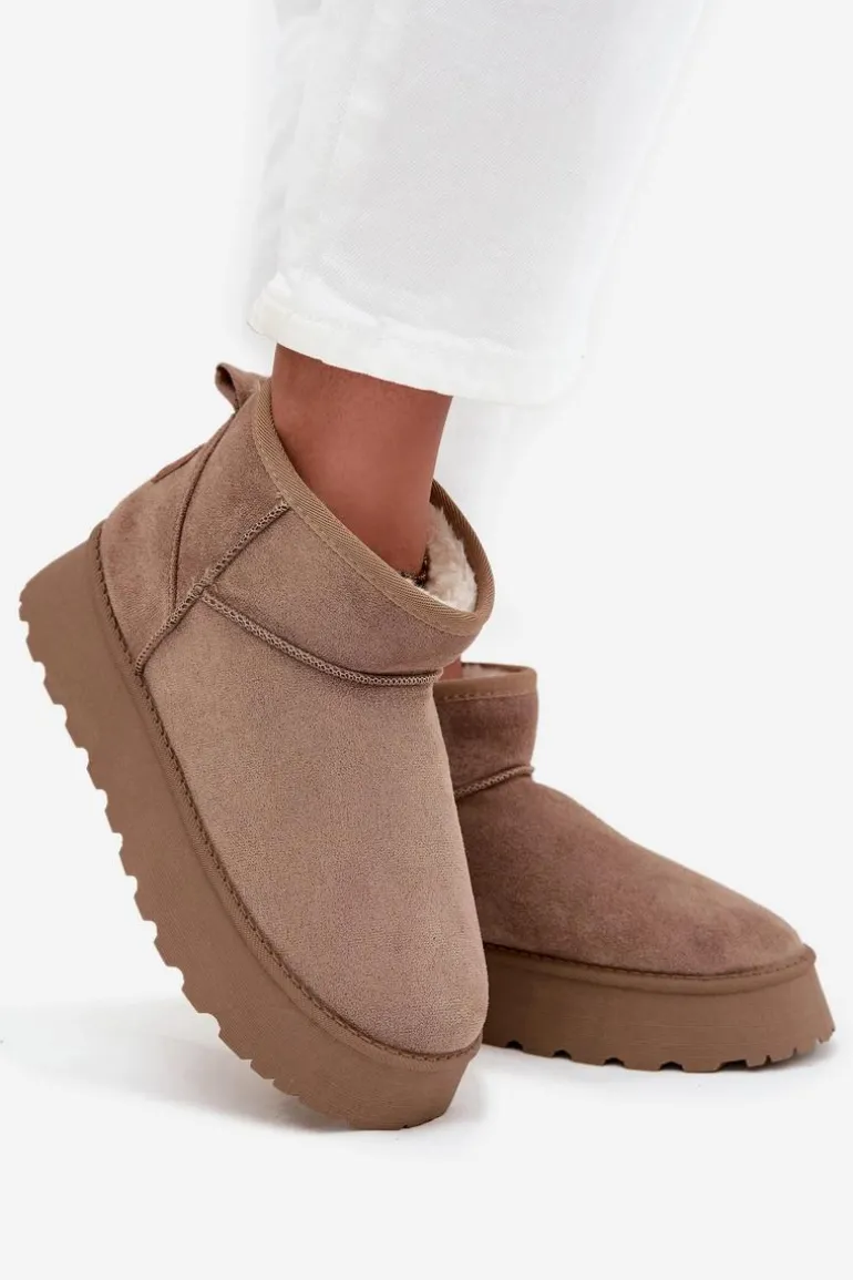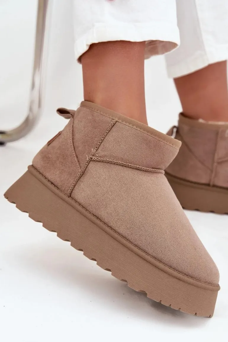 Modne śniegowce damskie wykonane z eko zamszu to idealny wybór na zimowe dni. Osadzone na platformie skutecznie izolują od chłodu, a miękkie futerko wewnątrz zapewnia komfort i ciepło. Stylowe i wygodne, świetnie sprawdzą się w codziennych, zimowych stylizacjach. Przy wyborze rozmiaru prosimy kierować tabelą rozmiarów.