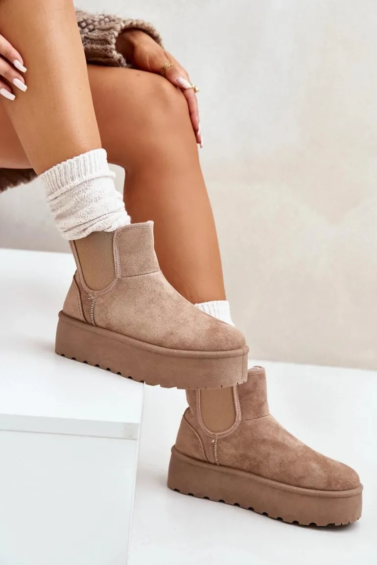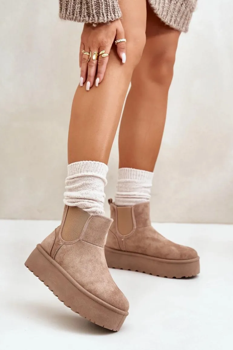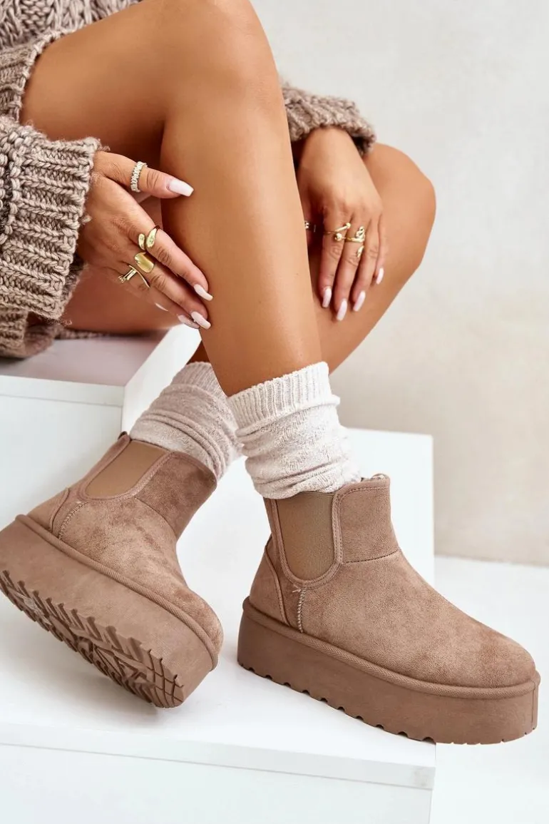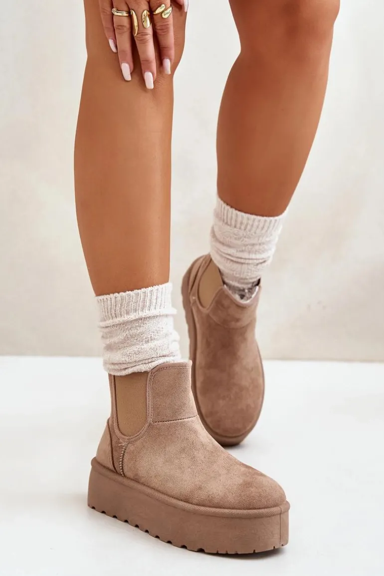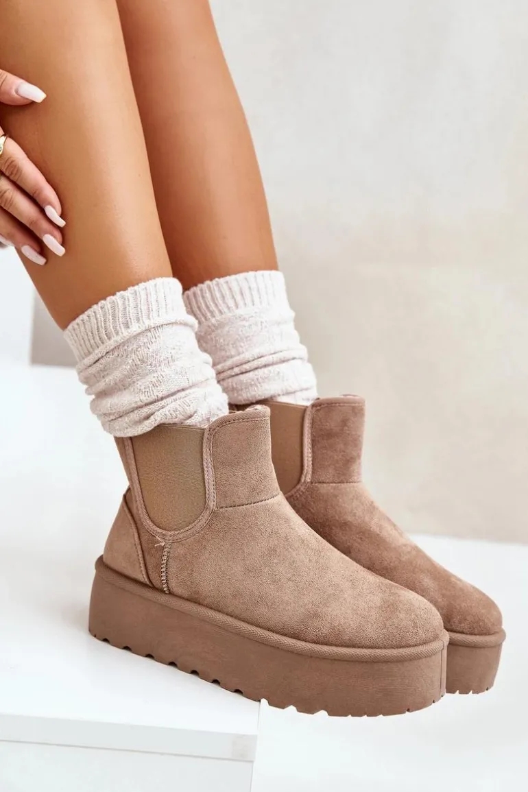 Śniegowce Damskie Na Platformie Z Elastycznymi Wstawkami Ciemnobeżowe Rialine