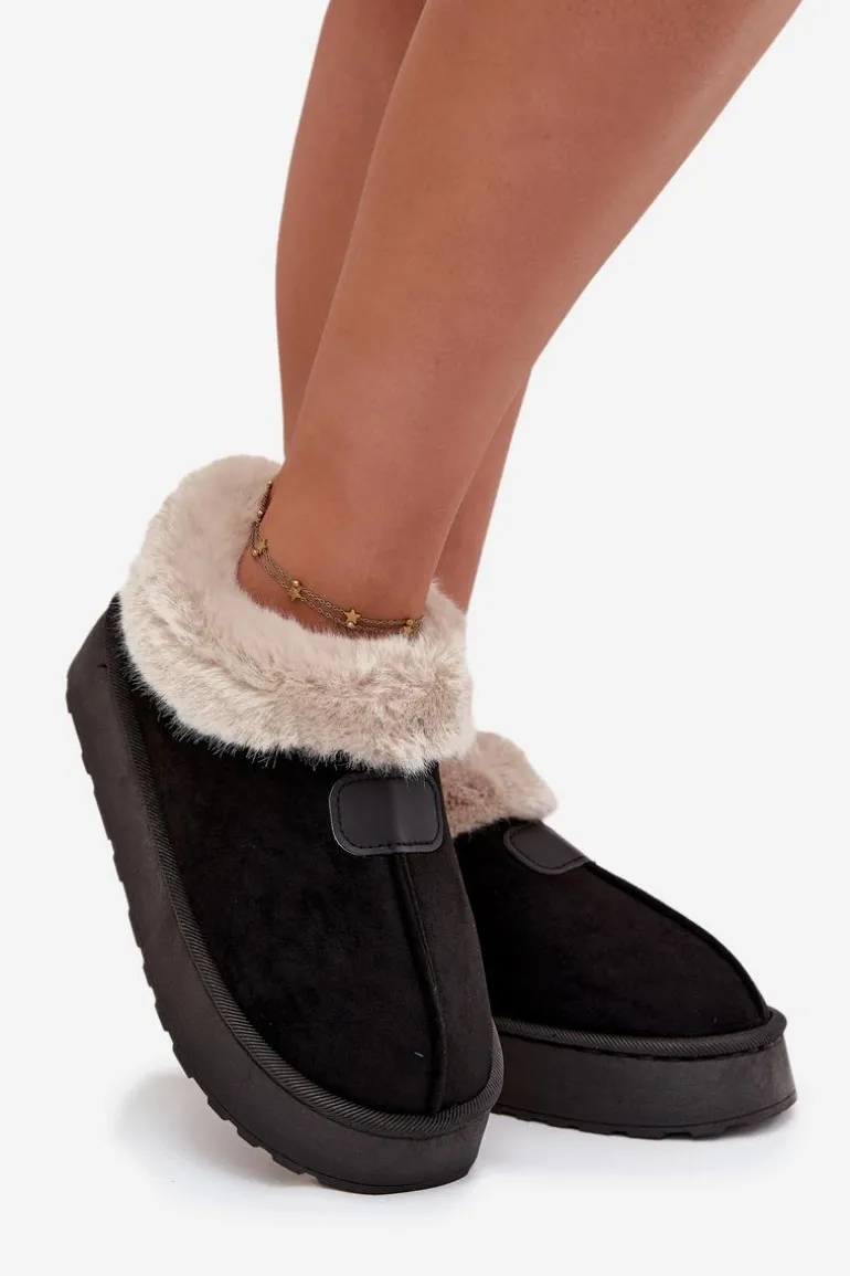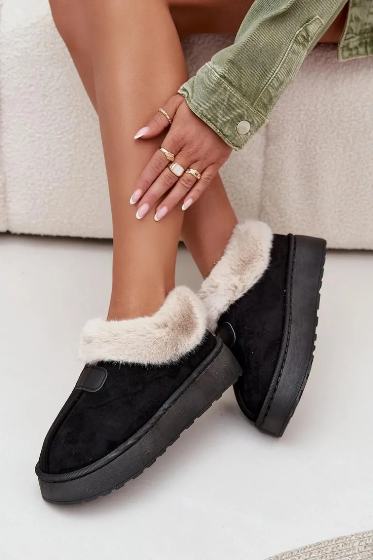 Śniegowce damskie z eko zamszu to wygodne i stylowe obuwie na chłodniejsze dni. Osadzone na praktycznej platformie skutecznie izolują od podłoża, a miękkie futerko zdobiące górę oraz wnętrze buta zapewnia ciepło i przyjemny komfort noszenia. To uniwersalny model, który doskonale sprawdzi się zarówno w domu, jak i podczas szybkich, codziennych wyjść.