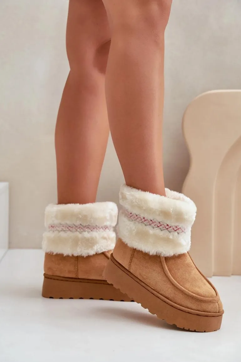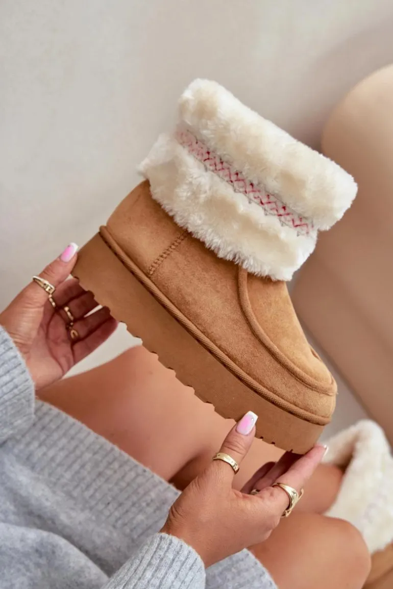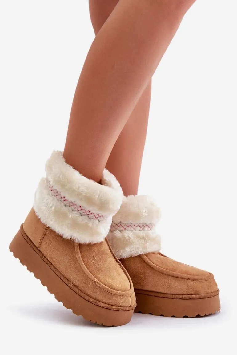 Śniegowce z eko zamszu na platformie to stylowy i funkcjonalny wybór na zimę. Cholewka ozdobiona futerkiem oraz modnym wzorem dodaje im charakteru, a podwyższona platforma izoluje od chłodnego podłoża, zapewniając ciepło i wygodę. Idealne na mroźne dni, łączą komfort z modnym designem. Model ten występuje również w rozmiarach dziecięcych! Stwórz komplet mama + dziecko! Przy wyborze rozmiaru prosimy sugerować się tabelą rozmiarów.