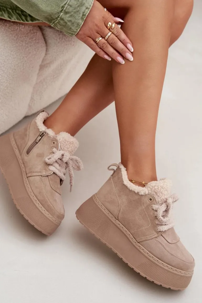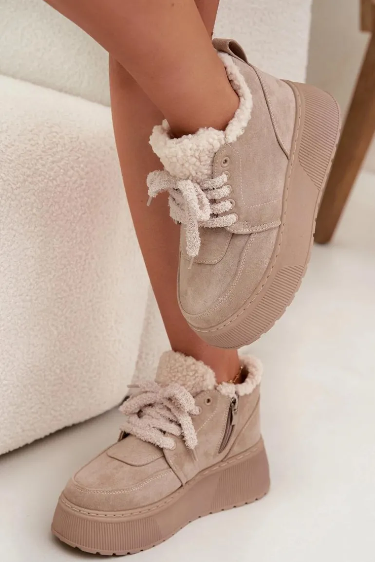 Zimowe dni nie muszą oznaczać rezygnacji ze stylu – te damskie śniegowce z eko zamszu łączą modny wygląd z funkcjonalnością. Masywna platforma chroni przed chłodem od podłoża, a futerko typu baranek gwarantuje ciepło i wygodę nawet w mroźne dni. Dzięki połączeniu zamka i sznurowania buty świetnie trzymają się na nodze i łatwo je zakładać. To idealny wybór na co dzień – komfortowe, praktyczne i pełne zimowego uroku. Przy wyborze rozmiaru prosimy sugerować się tabelą rozmiarów.