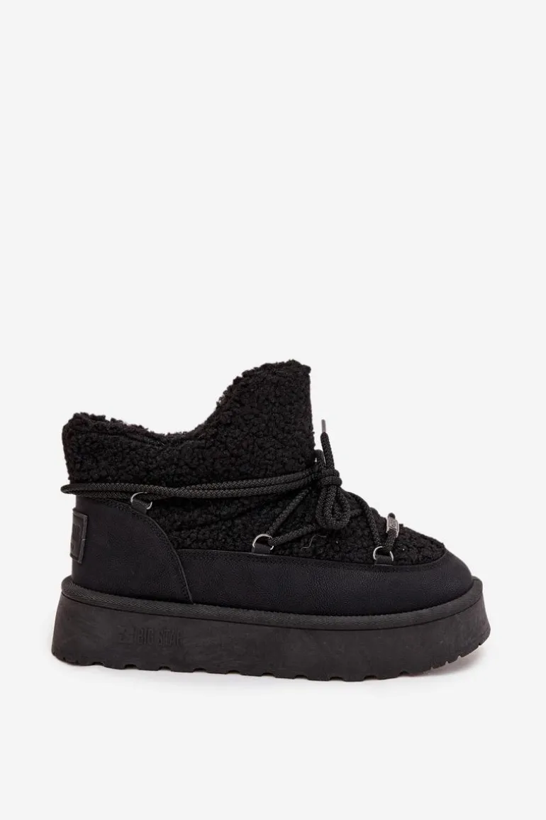 Te śniegowce damskie to połączenie stylu i wygody na zimowe dni! Wykonane z eko skóry i futerka typu baranek, zapewnią Ci ciepło i komfort w mroźne dni. Osadzone na platformie z gumowego tworzywa, gwarantują stabilność i wygodę przez cały dzień. Wiązanie z przodu daje możliwość idealnego dopasowania, a futerko w środku dodatkowo otula stopy przyjemnym ciepłem. Stylowy fason sprawi, że te śniegowce będą świetnym wyborem do zimowych stylizacji! Przy wyborze rozmiaru prosimy sugerować się tabelą rozmiarów.
