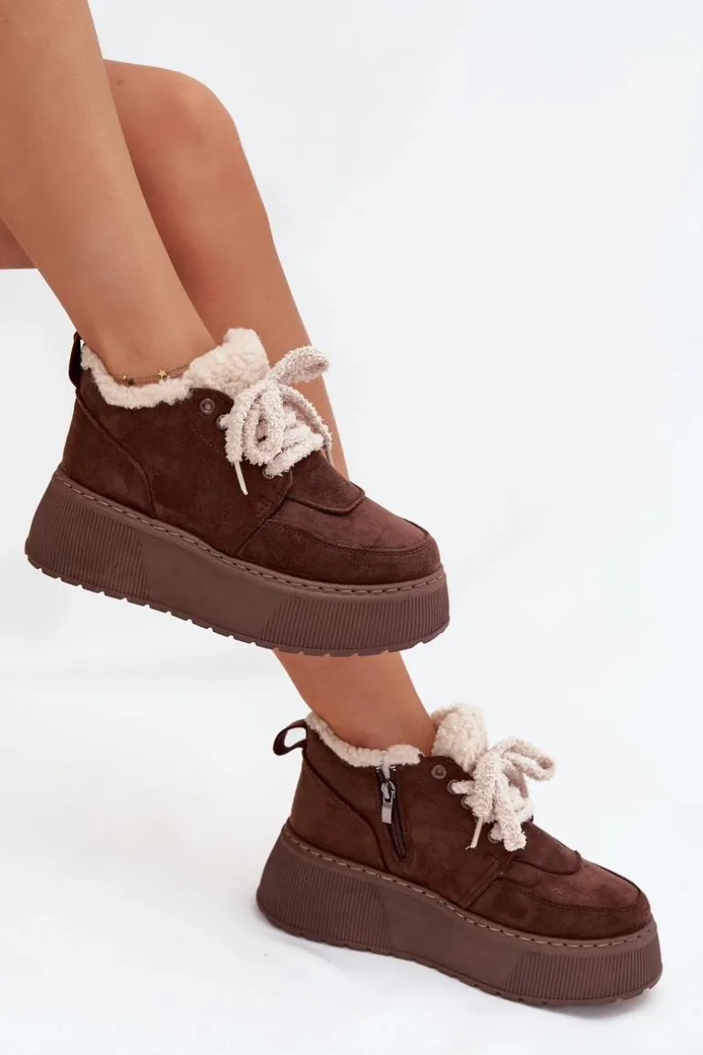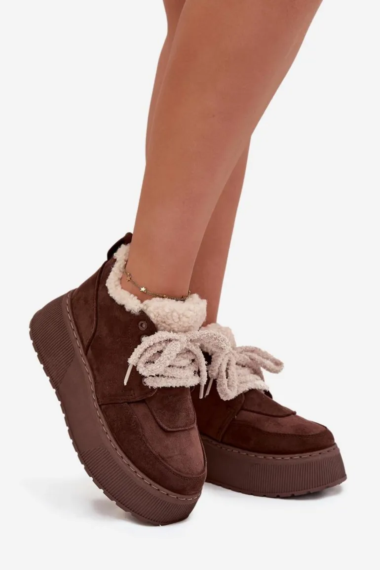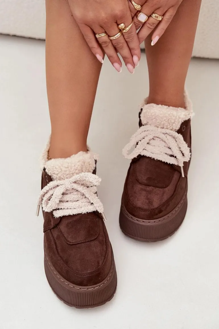 Zimowe dni nie muszą oznaczać rezygnacji ze stylu – te damskie śniegowce z eko zamszu łączą modny wygląd z funkcjonalnością. Masywna platforma chroni przed chłodem od podłoża, a futerko typu baranek gwarantuje ciepło i wygodę nawet w mroźne dni. Dzięki połączeniu zamka i sznurowania buty świetnie trzymają się na nodze i łatwo je zakładać. To idealny wybór na co dzień – komfortowe, praktyczne i pełne zimowego uroku. Przy wyborze rozmiaru prosimy sugerować się tabelą rozmiarów.