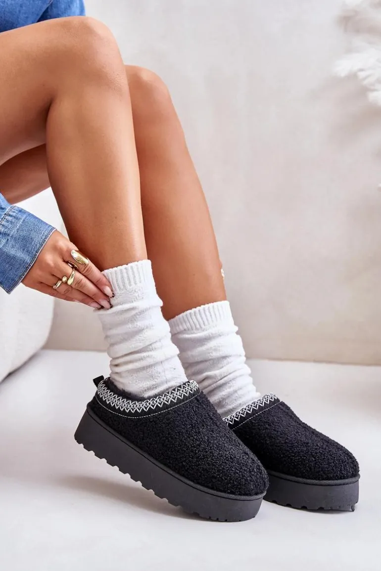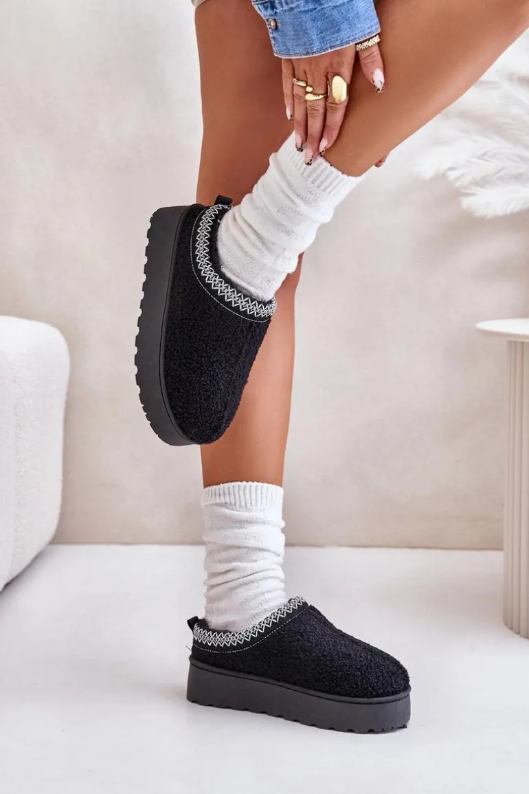 Śniegowce damskie, które łączą styl z funkcjonalnością. Cholewka wykonana z futerka typu baranek nadaje im wyjątkowego, przytulnego wyglądu. Osadzone na platformie, która zapewnia stabilność i izolację od zimna. Wnętrze ocieplone futerkiem gwarantuje komfort cieplny w chłodne dni. Dodatkowego uroku dodaje ozdobny haft na górze cholewki, który podkreśla modny charakter tych butów. Idealne na zimowe dni, kiedy chcesz wyglądać stylowo i czuć się wygodnie. Przy wyborze rozmiaru prosimy kierować tabelą rozmiarów.