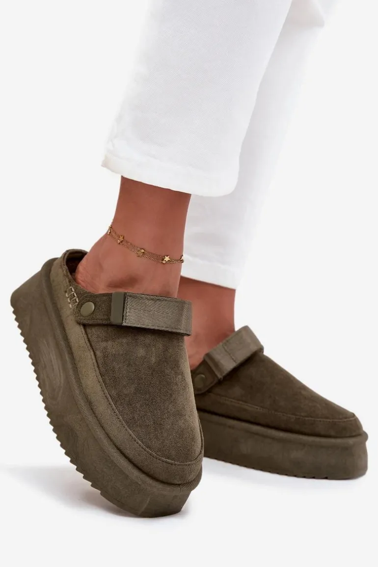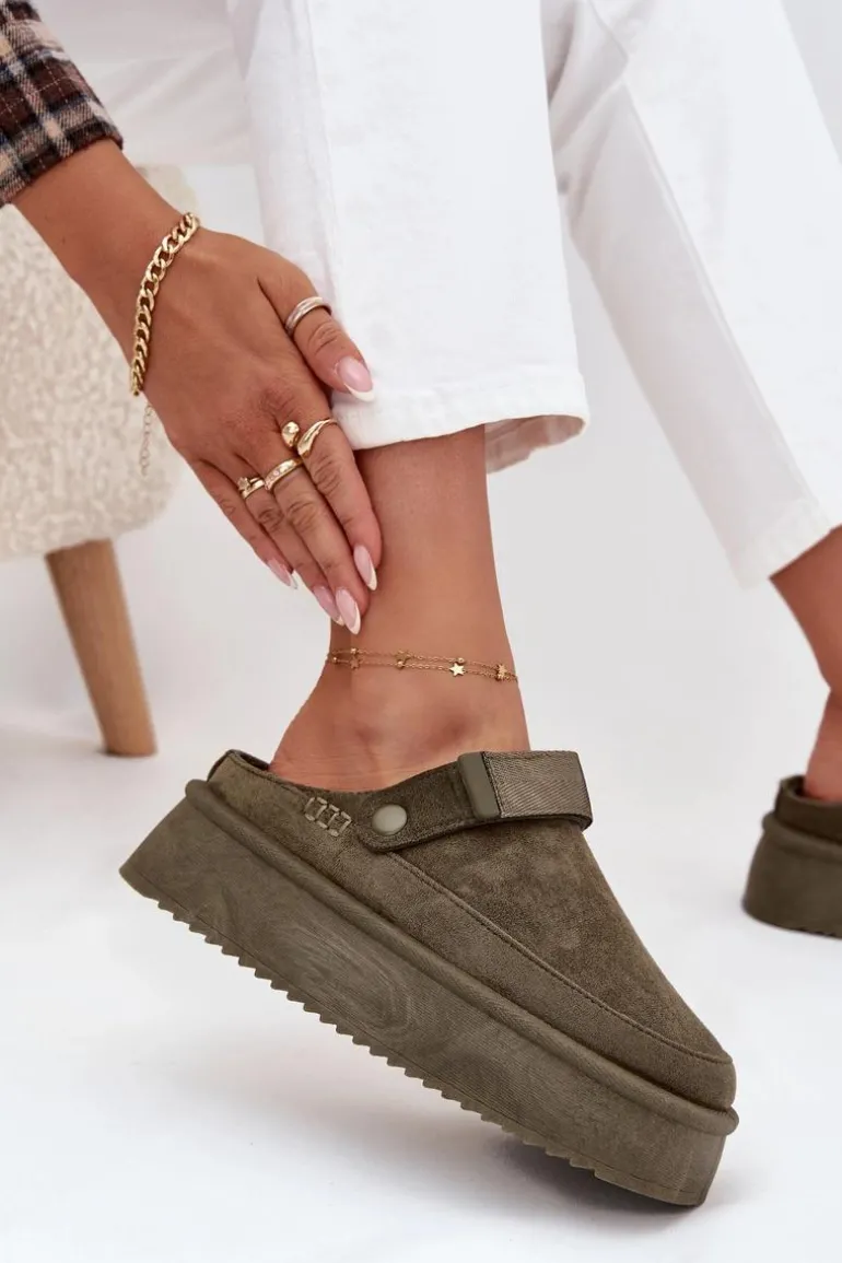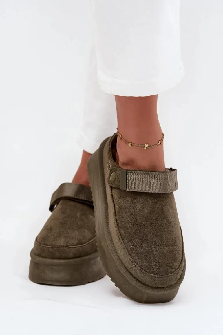 Ciepłe i wygodne śniegowce damskie wykonane z miękkiego eko zamszu to niezawodny wybór na zimowe dni. Osadzone na masywnej platformie skutecznie izolują stopy od zimnego podłoża, zapewniając komfort nawet podczas długich spacerów. Wnętrze wykończone miękkim futerkiem otula stopę przyjemnym ciepłem i chroni przed mrozem. Model posiada praktyczny, ruchomy pasek na rzep – możesz nosić go zarówno z przodu, jak i z tyłu buta. To idealne obuwie na co dzień.