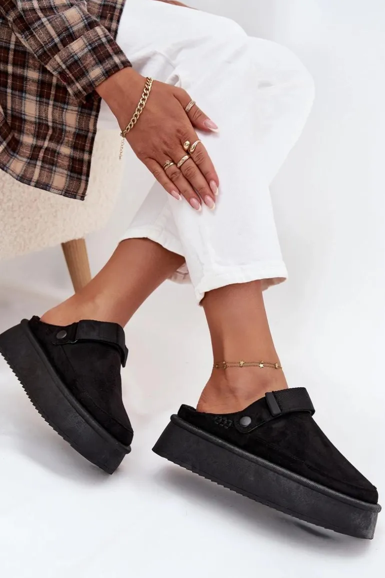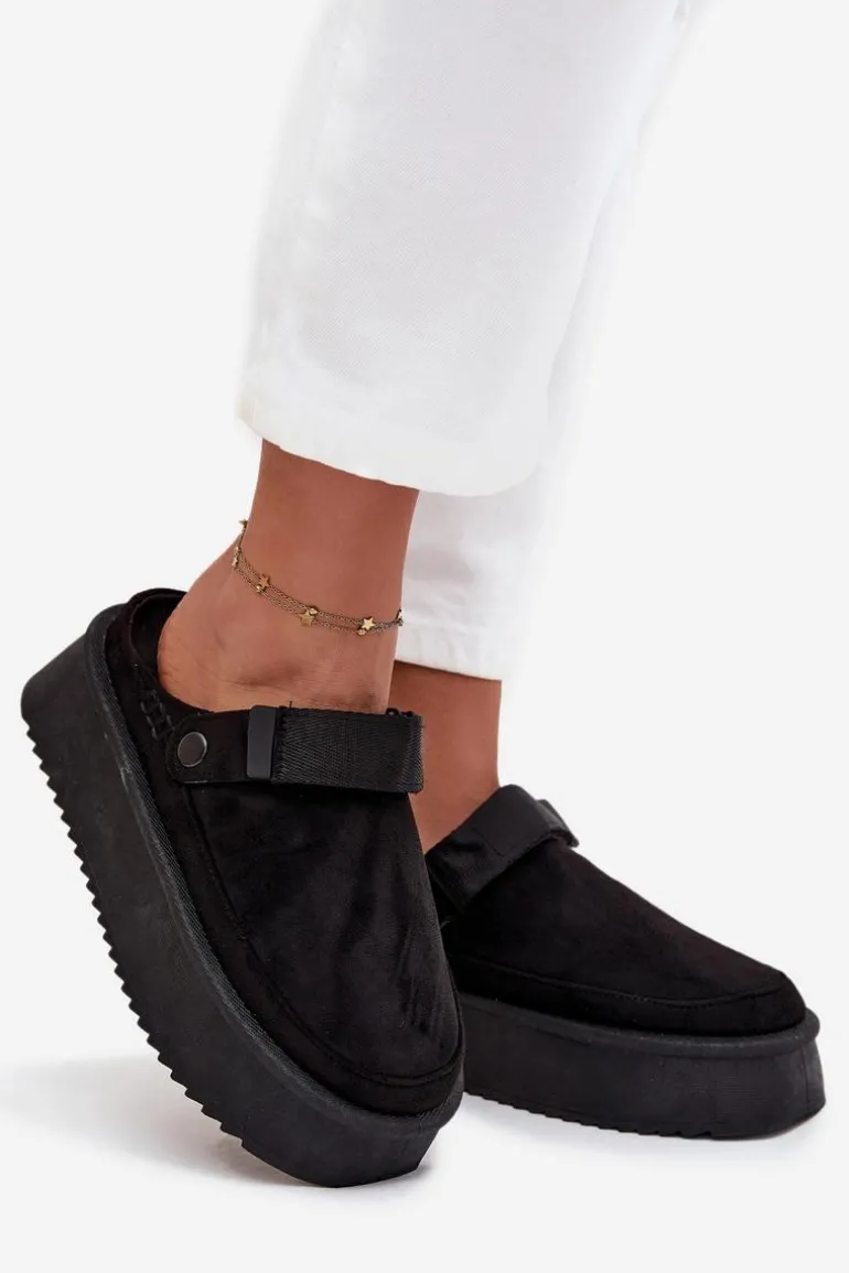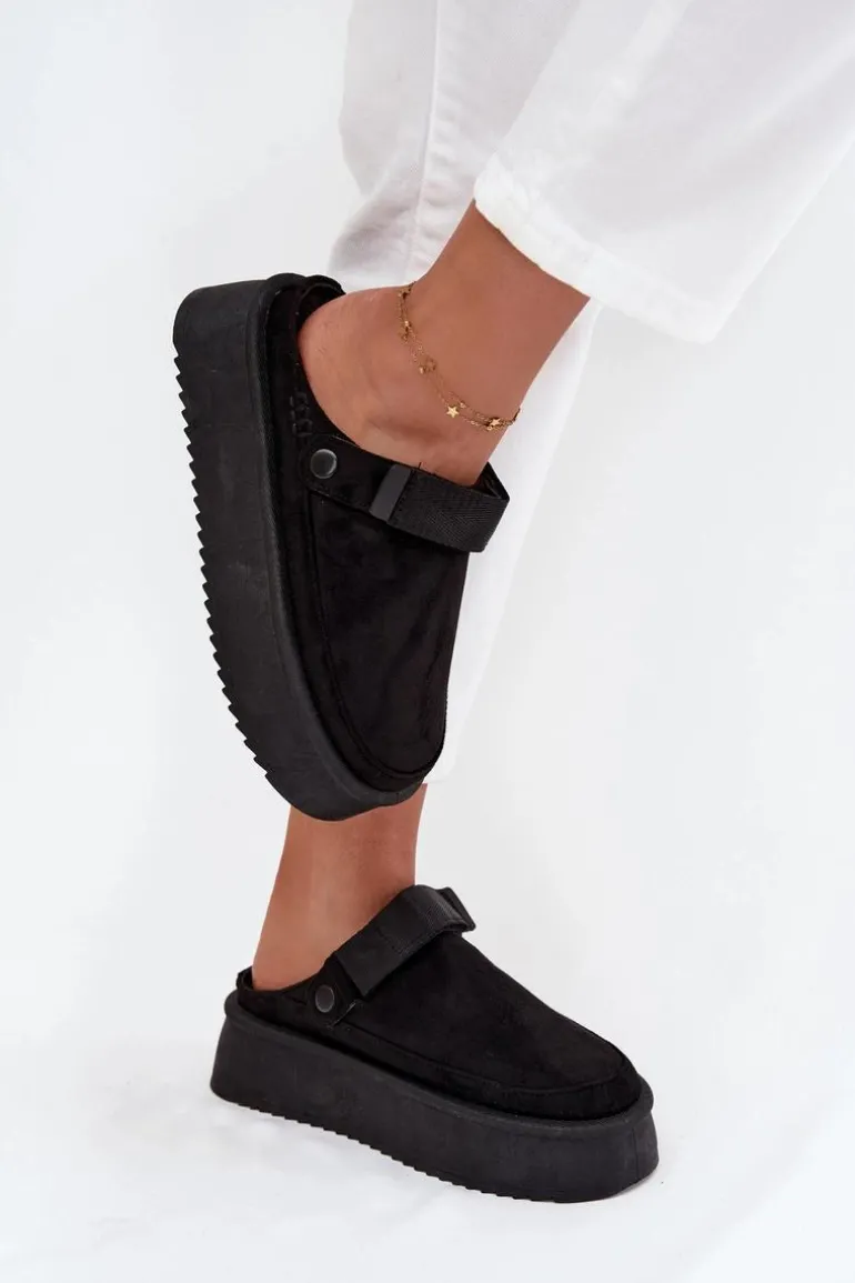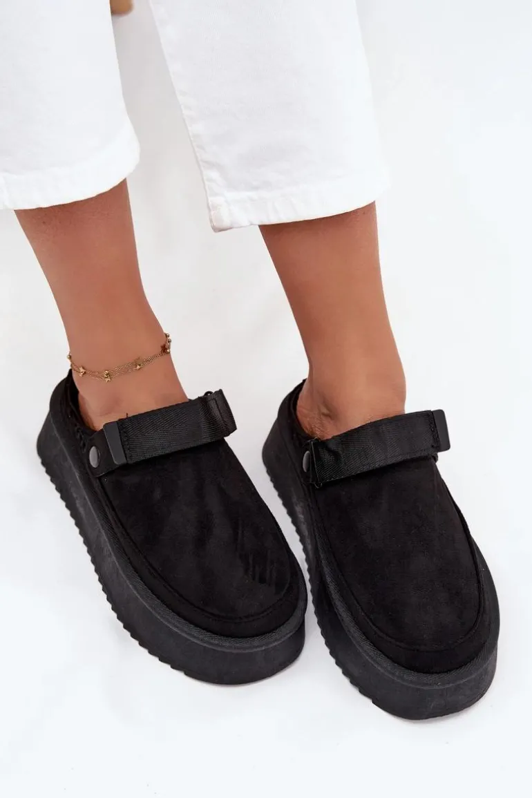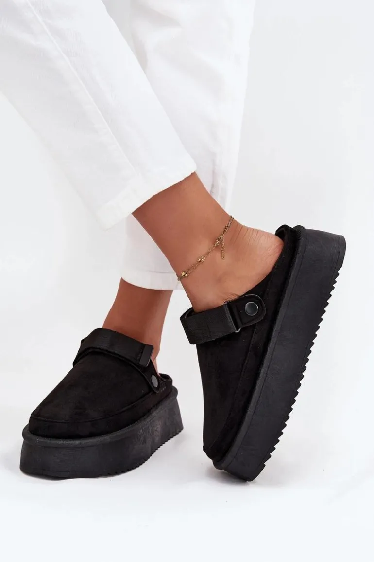 Ciepłe i wygodne śniegowce damskie wykonane z miękkiego eko zamszu to niezawodny wybór na zimowe dni. Osadzone na masywnej platformie skutecznie izolują stopy od zimnego podłoża, zapewniając komfort nawet podczas długich spacerów. Wnętrze wykończone miękkim futerkiem otula stopę przyjemnym ciepłem i chroni przed mrozem. Model posiada praktyczny, ruchomy pasek na rzep – możesz nosić go zarówno z przodu, jak i z tyłu buta. To idealne obuwie na co dzień.