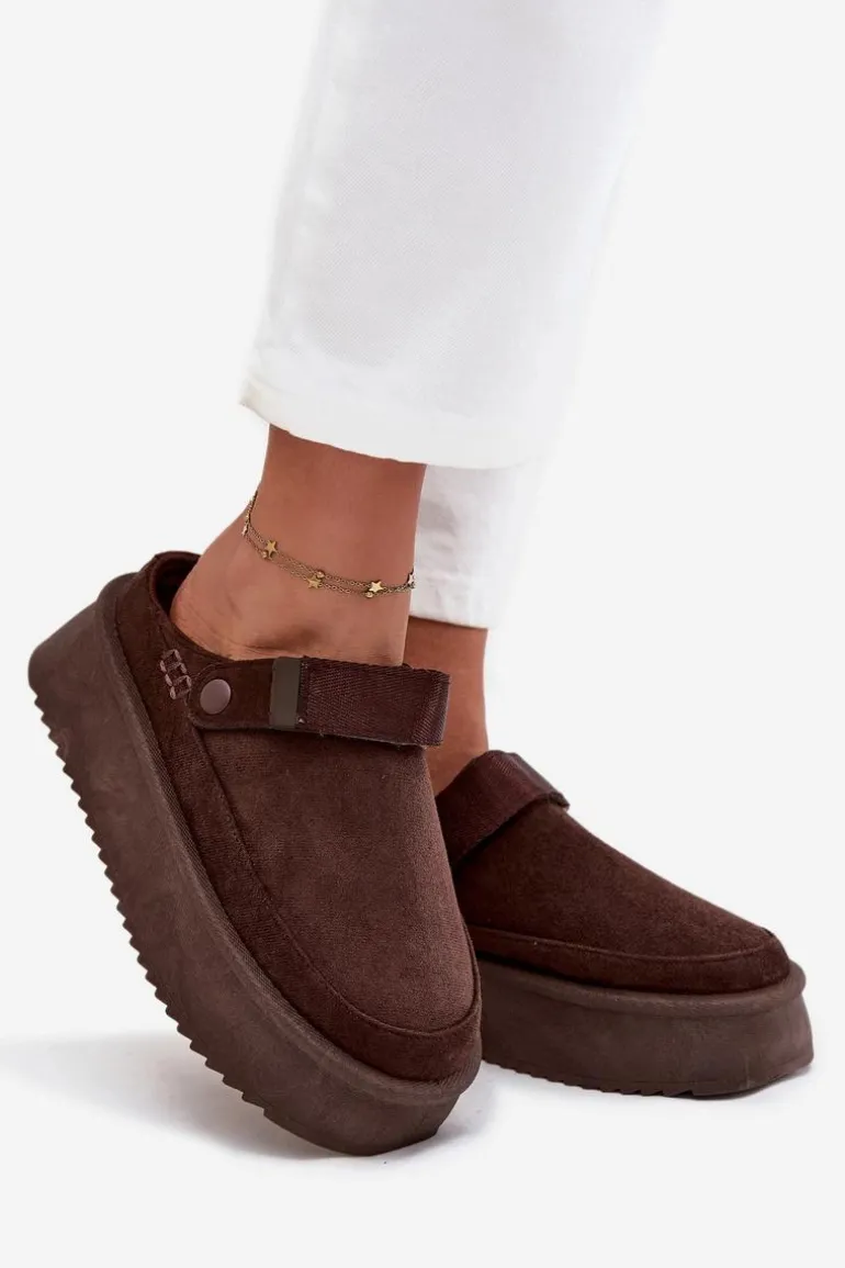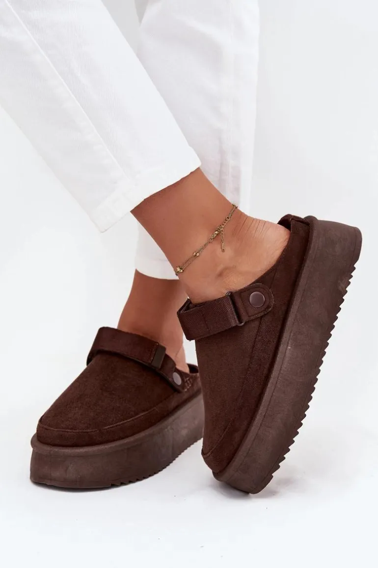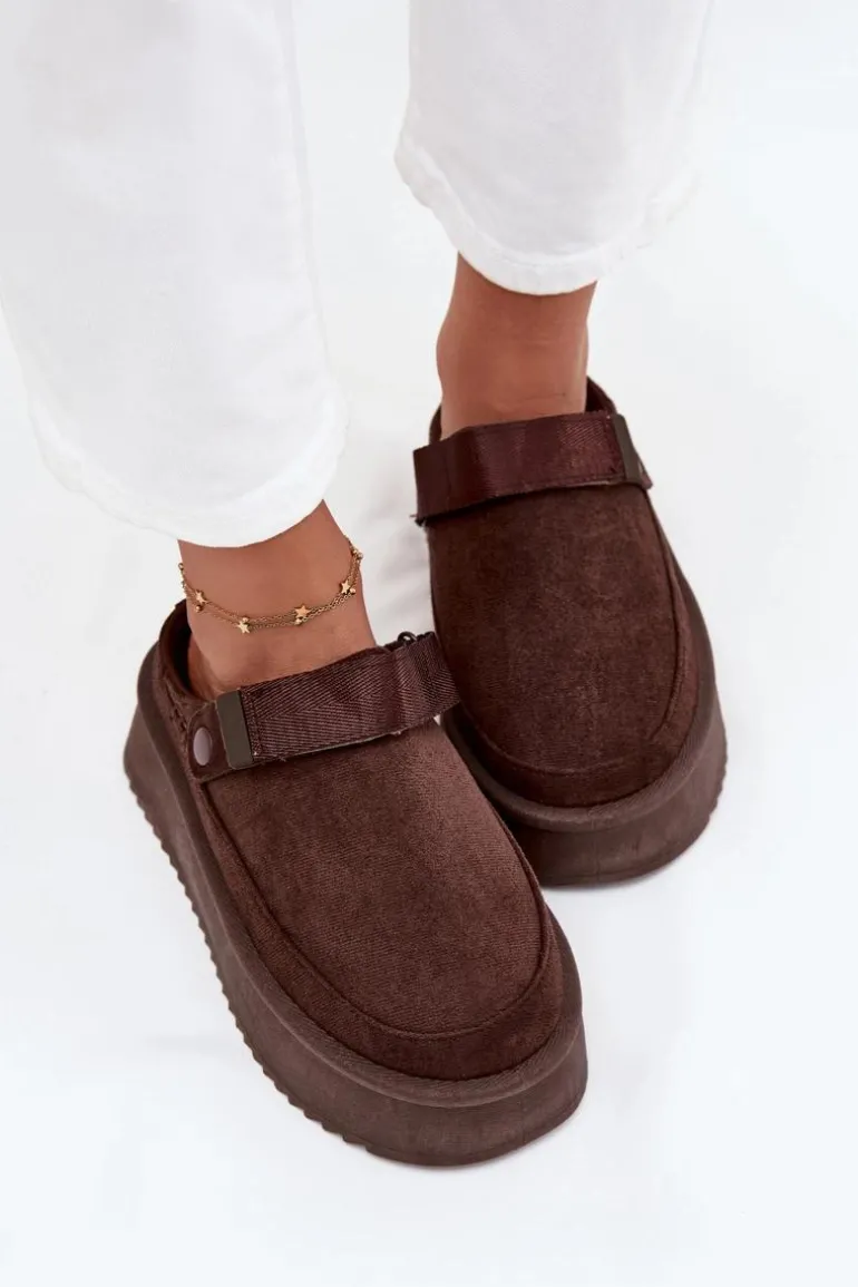 Ciepłe i wygodne śniegowce damskie wykonane z miękkiego eko zamszu to niezawodny wybór na zimowe dni. Osadzone na masywnej platformie skutecznie izolują stopy od zimnego podłoża, zapewniając komfort nawet podczas długich spacerów. Wnętrze wykończone miękkim futerkiem otula stopę przyjemnym ciepłem i chroni przed mrozem. Model posiada praktyczny, ruchomy pasek na rzep – możesz nosić go zarówno z przodu, jak i z tyłu buta. To idealne obuwie na co dzień.