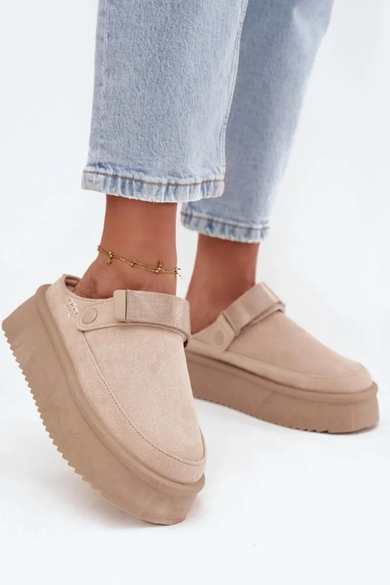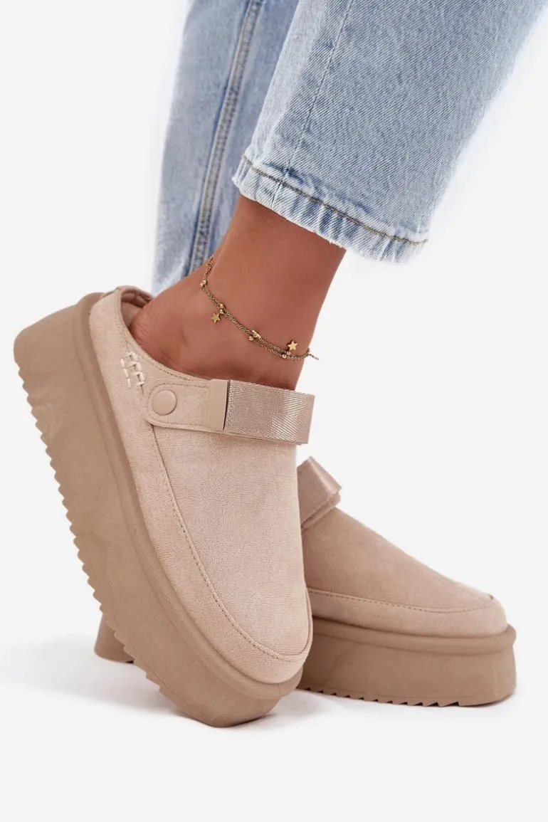Ciepłe i wygodne śniegowce damskie wykonane z miękkiego eko zamszu to niezawodny wybór na zimowe dni. Osadzone na masywnej platformie skutecznie izolują stopy od zimnego podłoża, zapewniając komfort nawet podczas długich spacerów. Wnętrze wykończone miękkim futerkiem otula stopę przyjemnym ciepłem i chroni przed mrozem. Model posiada praktyczny, ruchomy pasek na rzep – możesz nosić go zarówno z przodu, jak i z tyłu buta. To idealne obuwie na co dzień.