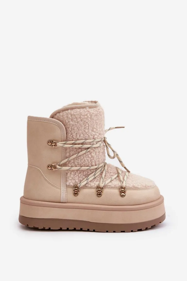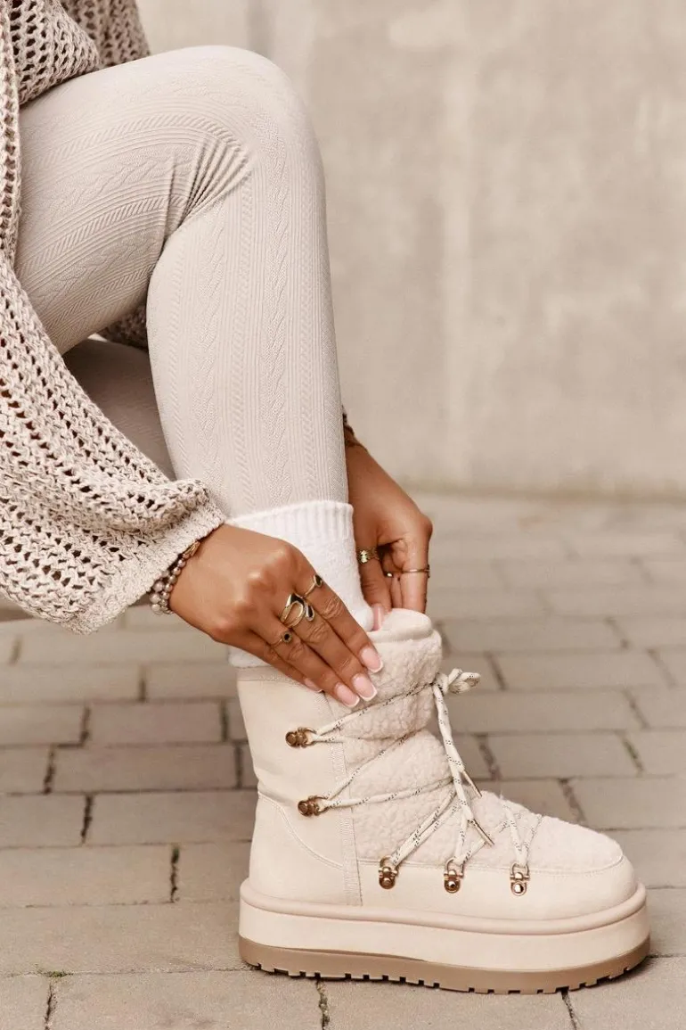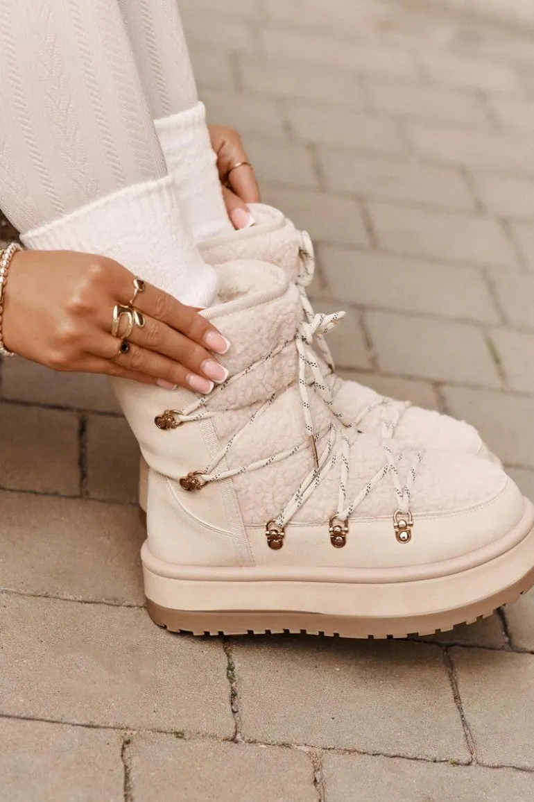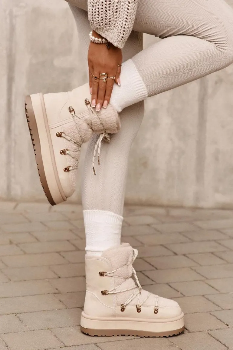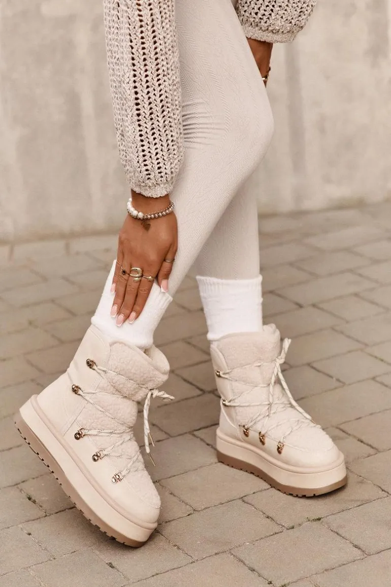 Damskie śniegowce na masywnej platformie, która doskonale odizoluje od zimnego podłoża. Środek ocieplony grubym futerkiem, co zapewni ciepło w mroźne dni. Cholewka z wiązaniem i syntetycznym kożuszkiem. Koniecznie powinnaś je mieć w swojej zimowej garderobie! Przy wyborze rozmiaru prosimy sugerować się tabelą rozmiarów.