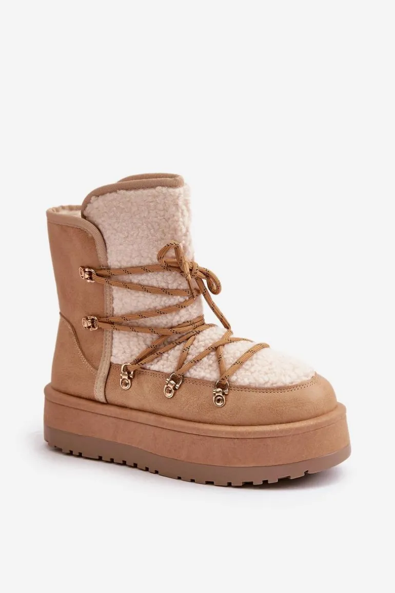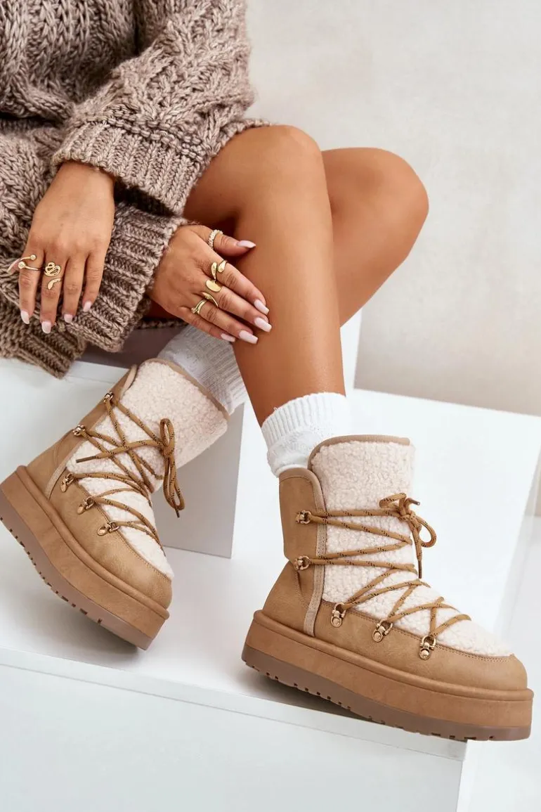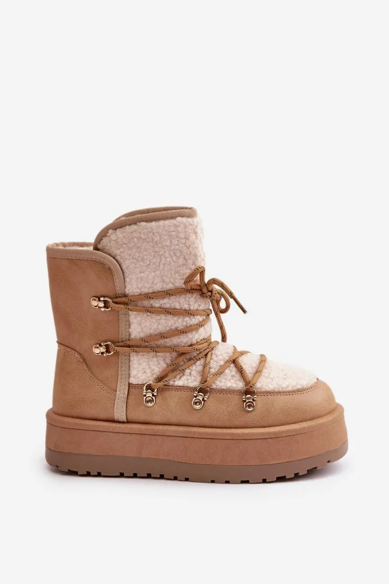 Śniegowce Damskie Na Platformie Z Wiązaniem Jasnobrązowe Riaviana