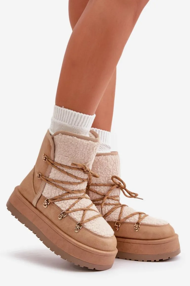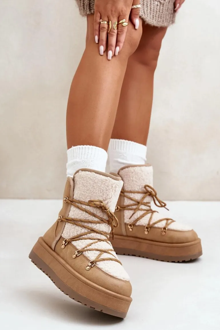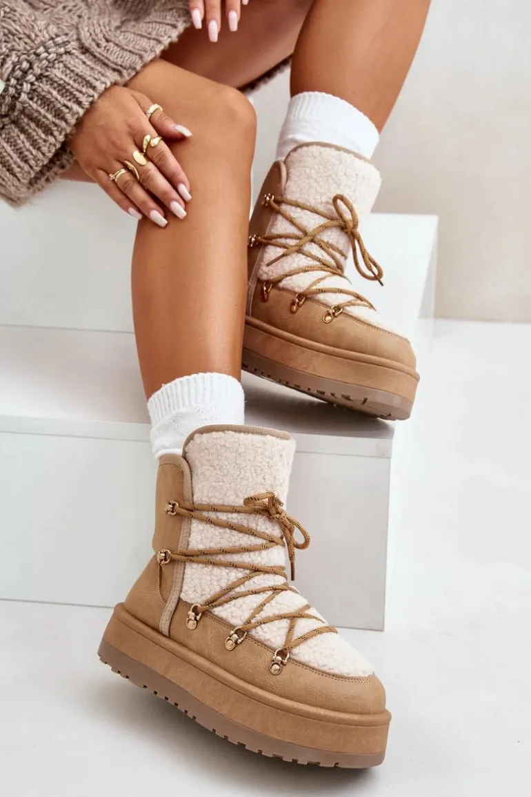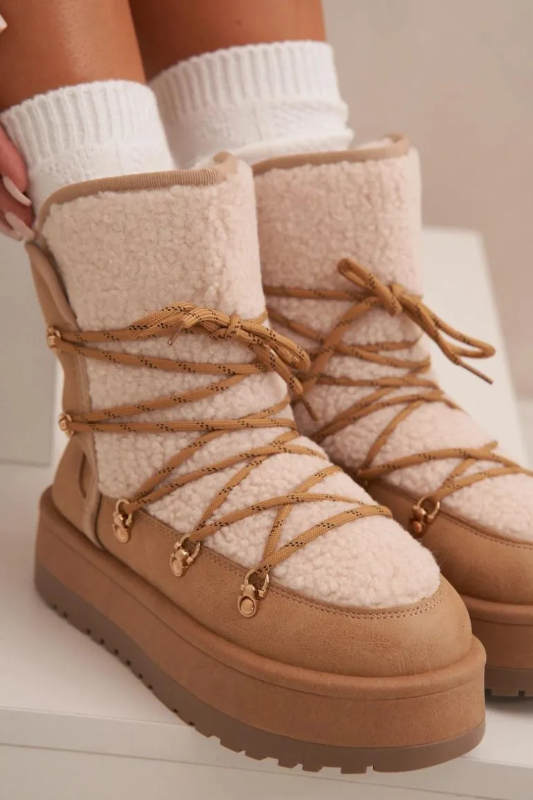 Śniegowce Damskie Na Platformie Z Wiązaniem Jasnobrązowe Riaviana
