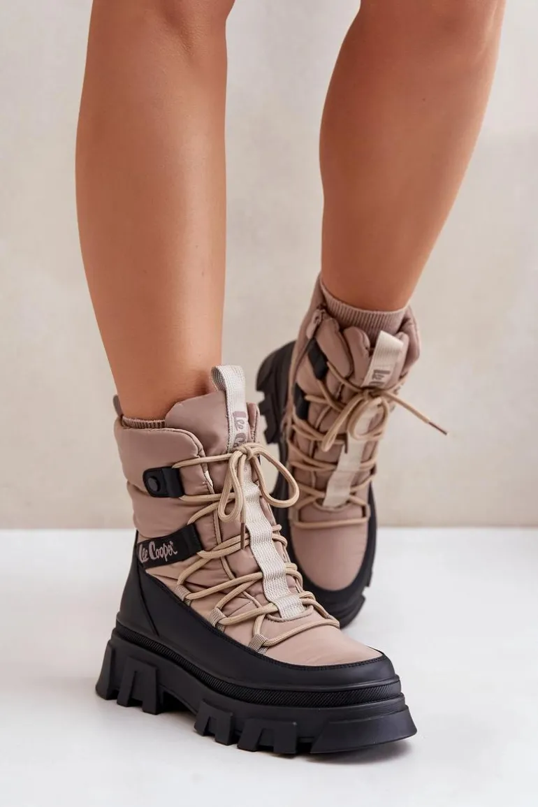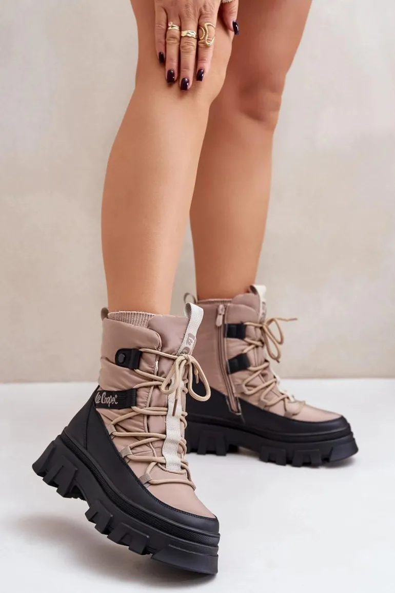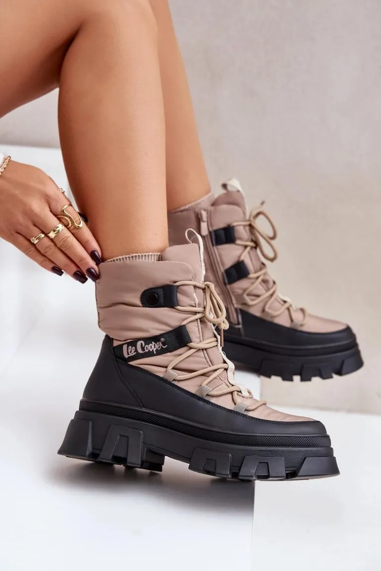 Śniegowce Damskie Na Zamek Lee Cooper LCJ-24-47-3143 Beżowe