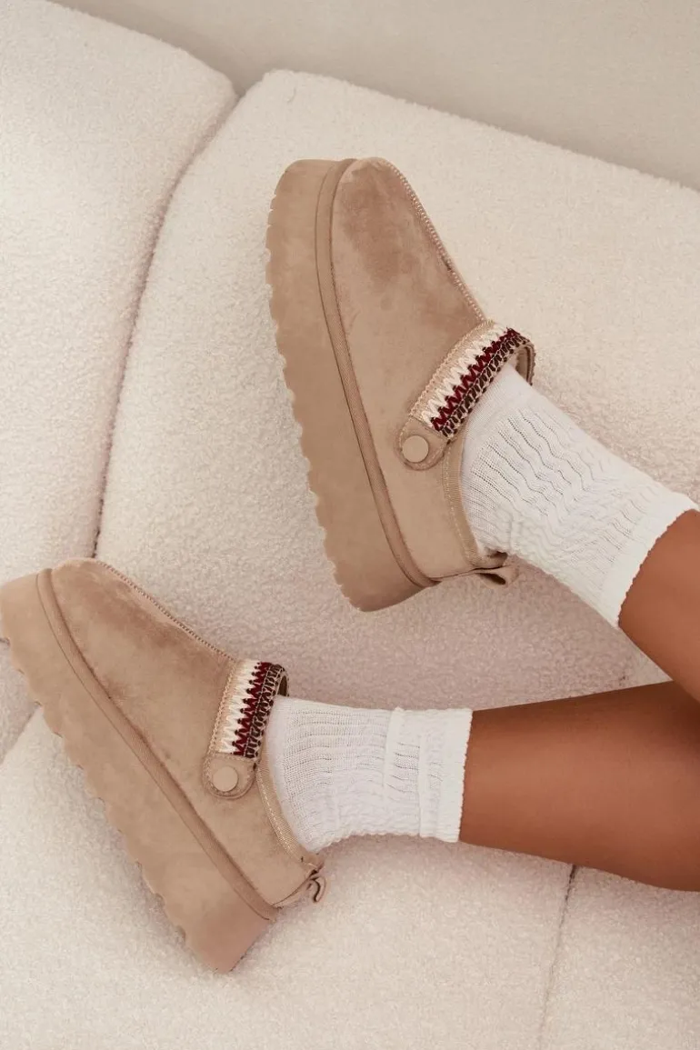 Niskie śniegowce damskie z eko zamszu to idealne połączenie stylu, funkcjonalności i komfortu na zimowe dni. Model osadzony na stabilnej platformie zapewnia pewny krok i dodatkową izolację od zimnego podłoża, a miękkie futerko wewnątrz buta gwarantuje przyjemne ciepło nawet w najchłodniejsze dni. Charakterystycznym elementem jest ruchomy pasek z haftem, który można nosić z tyłu, aby lepiej ustabilizować stopę lub z przodu, nadając śniegowcom nieco inny, modny wygląd. Niski fason sprawia, że buty są praktyczne i wygodne, a jednocześnie nowoczesne – dostępne w kilku wariantach kolorystycznych, dzięki czemu łatwo dopasować je do zimowych stylizacji, od casualowych spacerów po miejskie wyjścia. Przy wyborze rozmiaru prosimy kierować tabelą rozmiarów.