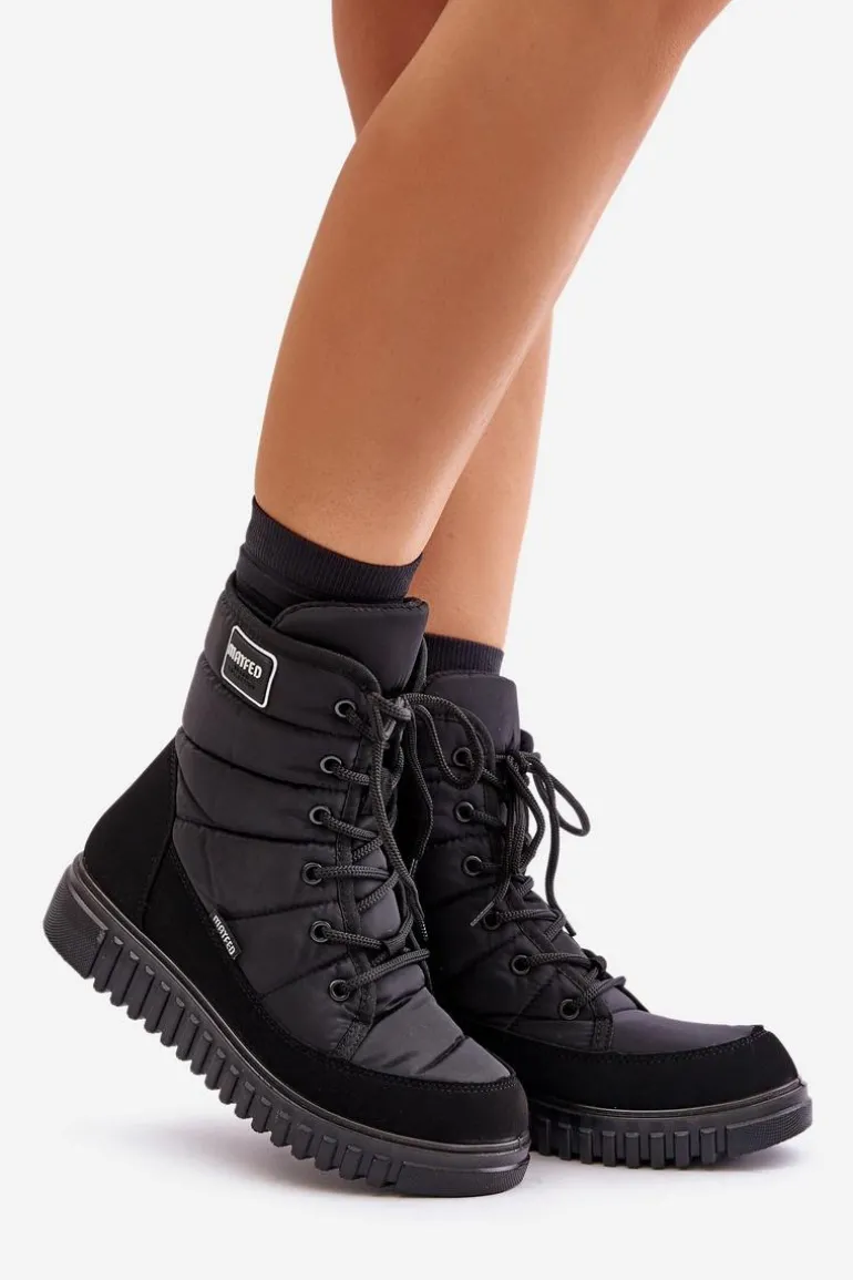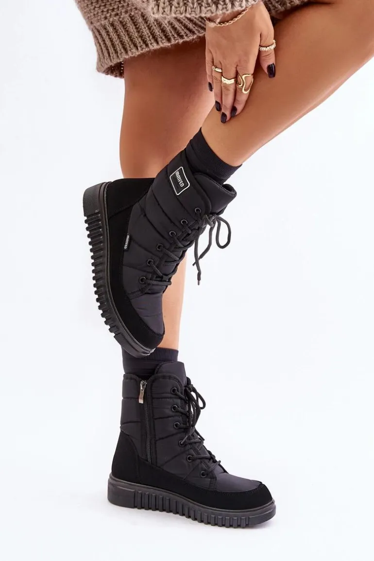 Damskie śniegowce, które charakteryzują się wygodą. Osadzone na platformie. Wnętrze ocieplane materiałem typu polar doskonale odizoluje od zimna, zapewniając ciepło nawet w najzimniejsze dni. Zapinane na zamek i sznurowane. Doskonałe do codziennego użytku w zimowych miesiącach! Przy wyborze rozmiaru, prosimy sugerować się tabelą rozmiarów.