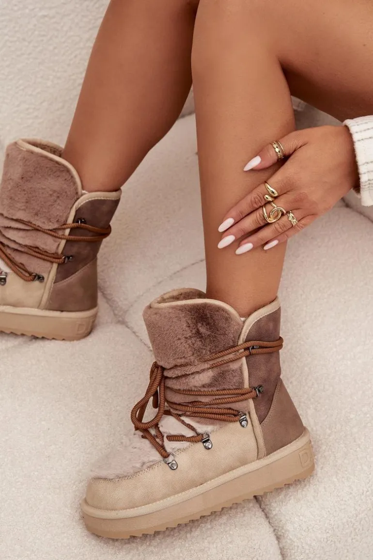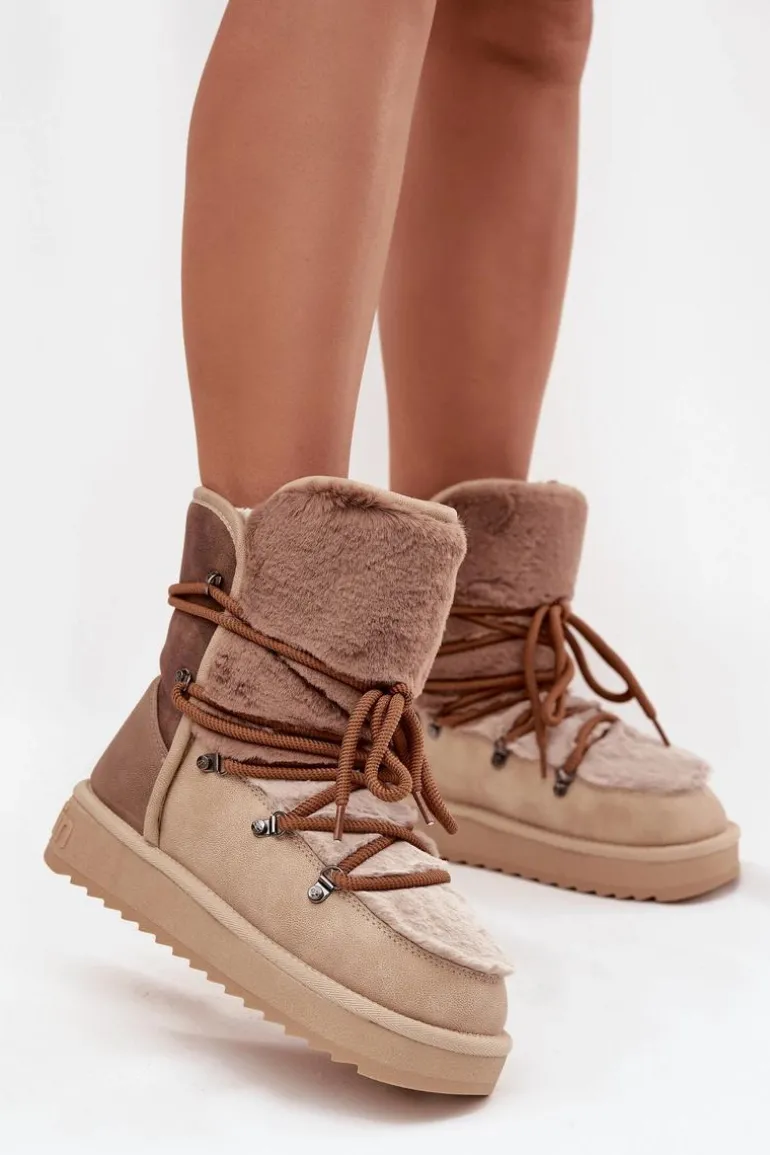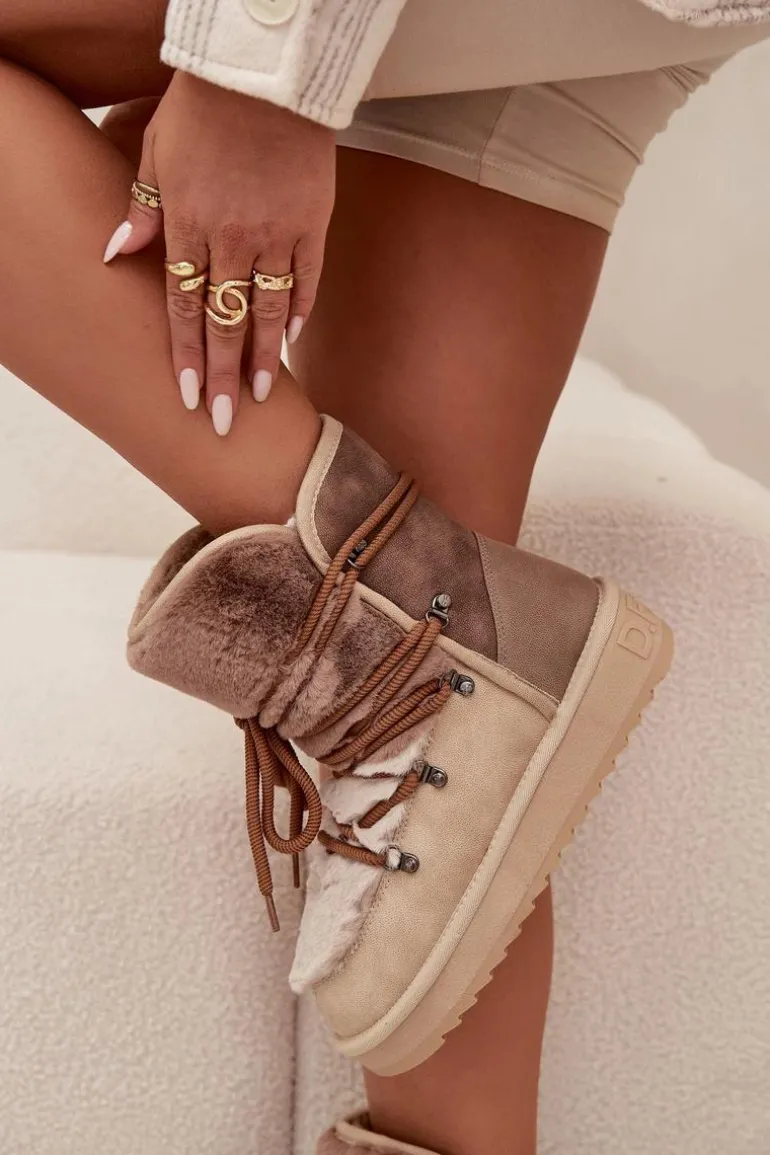 Damskie śniegowce wykonane z wysokiej jakości materiału syntetycznego to niezawodna propozycja na zimowe dni. Osadzone na podeszwie z gumowego tworzywa, co zapewnia pewny krok na różnych nawierzchniach. Wnętrze i cholewka wyściełane miękkim futerkiem gwarantują ciepło i wygodę noszenia. Stylowe i funkcjonalne, doskonale sprawdzą się podczas mroźnych dni, zapewniając komfort i ochronę przed chłodem. Przy wyborze rozmiaru prosimy sugerować się tabelą rozmiarów.