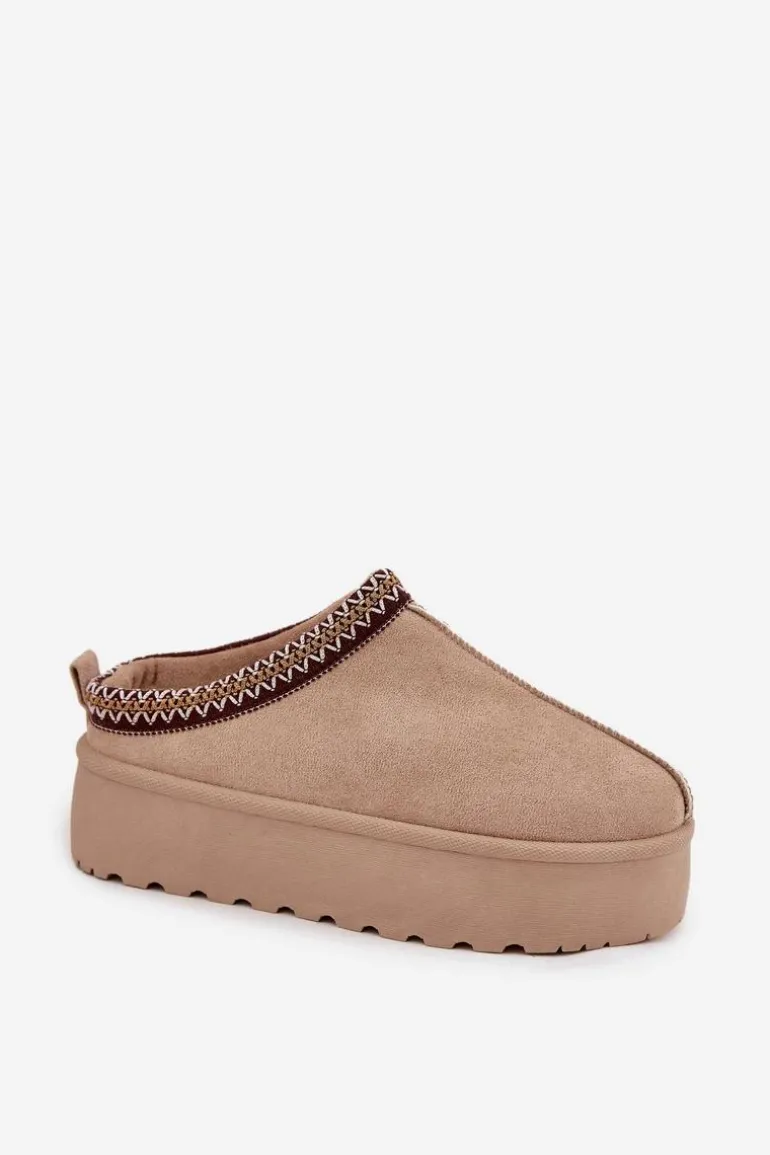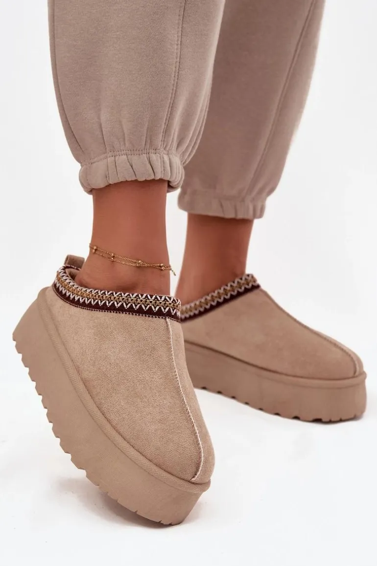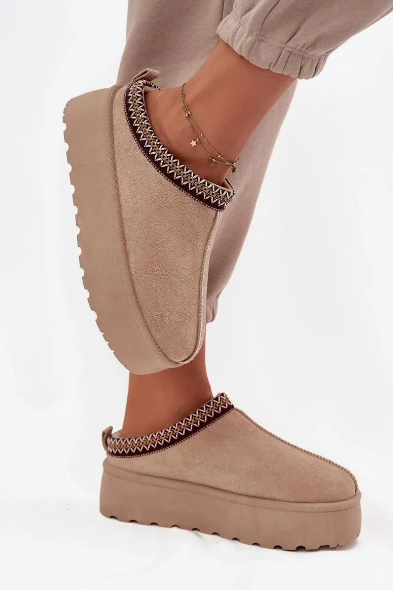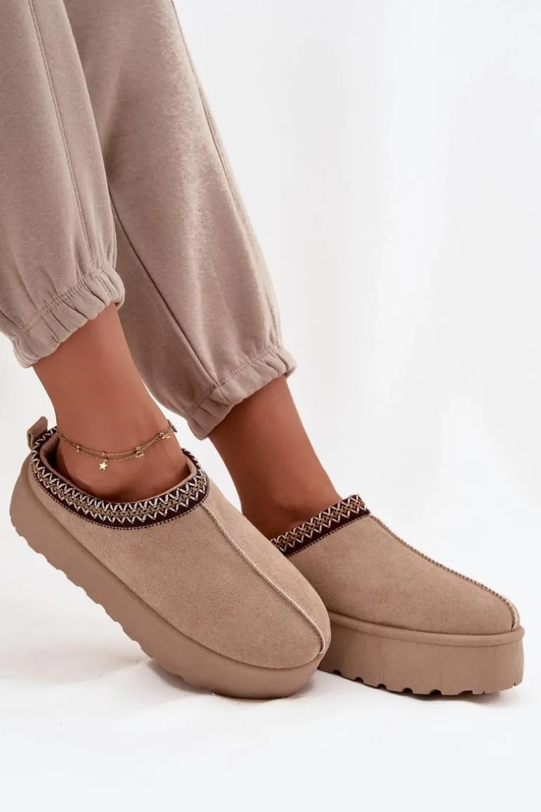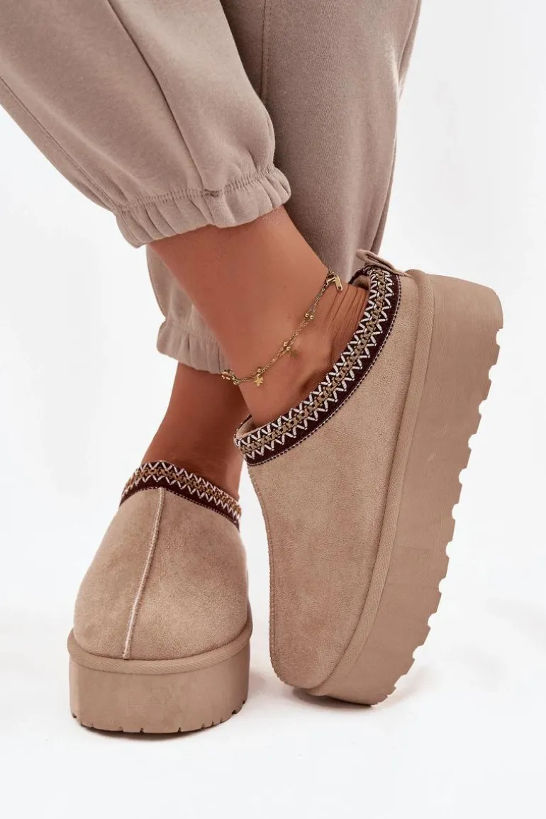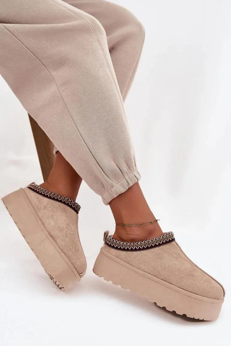 Śniegowce Damskie Z Ozdobnym Haftem Beżowe Jenira