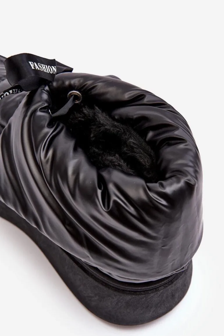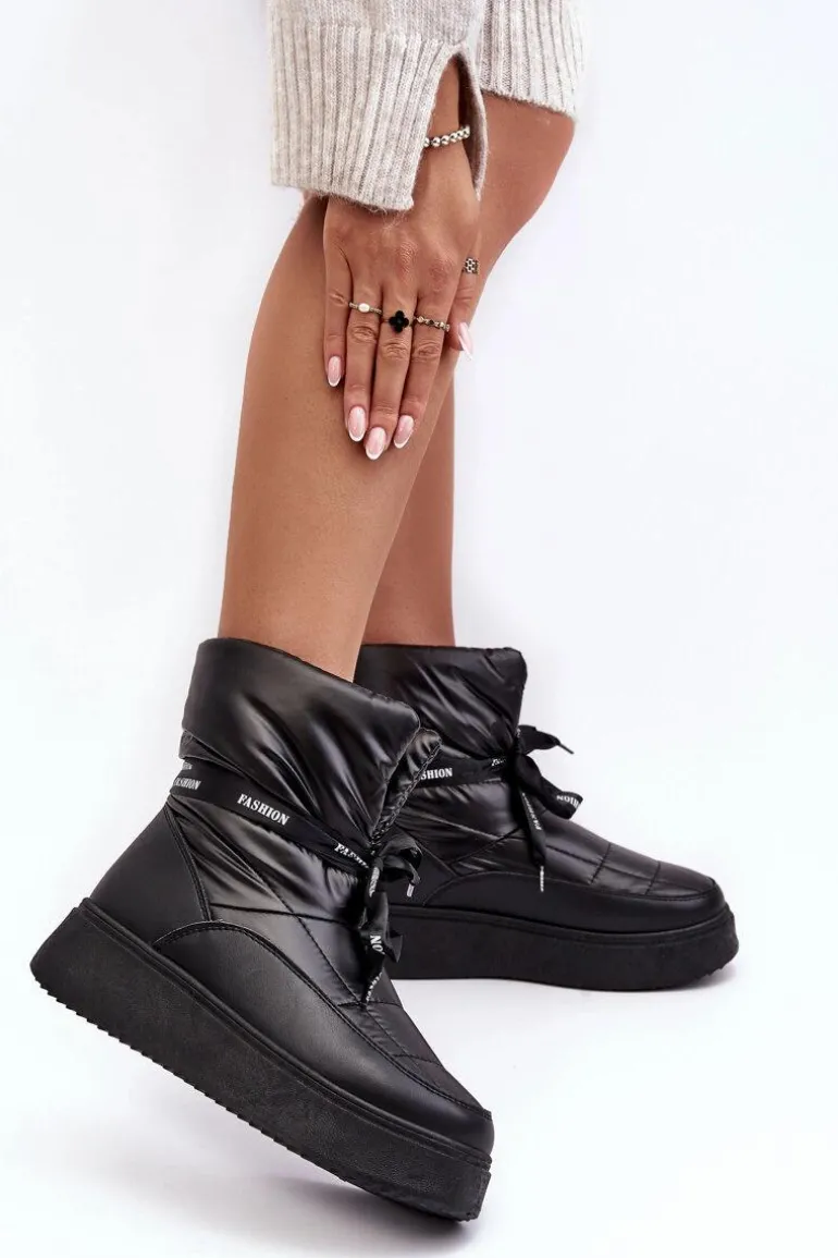 Stylowe, damskie śniegowce zostały wykonane z połączenia eko skóry i materiału tekstylnego. Osadzone na masywnej platformie. Wykonane z materiału tekstylnego. Grube ocieplenie w postaci futerka zapewni ochronę przed zimnem. Model wsuwany z ozdobnym wiązaniem na cholewce. Przy wyborze rozmiaru prosimy sugerować się tabelą rozmiarów.