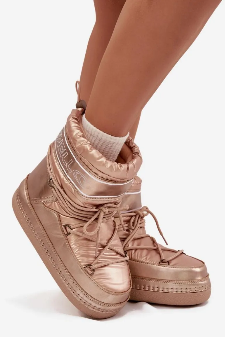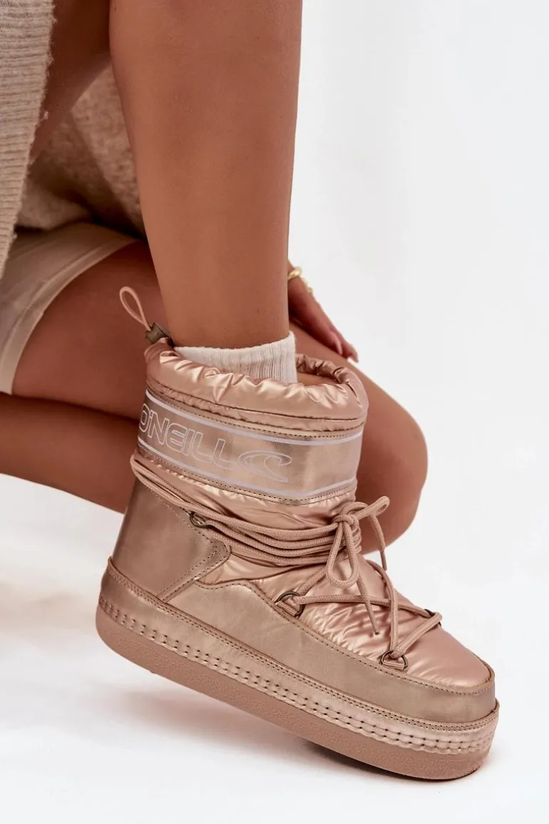 Śniegowce damskie marki O’NEILL to doskonały wybór na zimowe dni, gdy liczy się ciepło, wygoda i ochrona przed trudnymi warunkami pogodowymi. Wykonane z wysokiej jakości materiałów odpornych na wiatr i mróz. Wnętrze butów zostało ocieplone, dzięki czemu stopy pozostają ciepłe i chronione przed chłodem. Solidna podeszwa z gumowego tworzywa zapewnia stabilność oraz bardzo dobrą przyczepność do podłoża, co jest szczególnie ważne na śniegu czy lodzie. Model wsuwany ułatwia szybkie zakładanie, a dodatkowe wiązanie pozwala lepiej dopasować obuwie do stopy, zwiększając komfort noszenia. To praktyczne i stylowe śniegowce, które świetnie sprawdzą się zarówno w codziennym użytkowaniu, jak i podczas zimowych wyjazdów. Przy wyborze rozmiaru prosimy sugerować się tabelą rozmiarów.