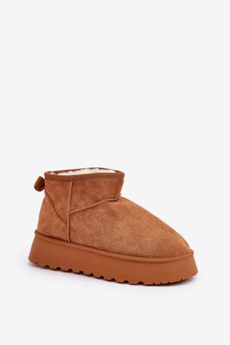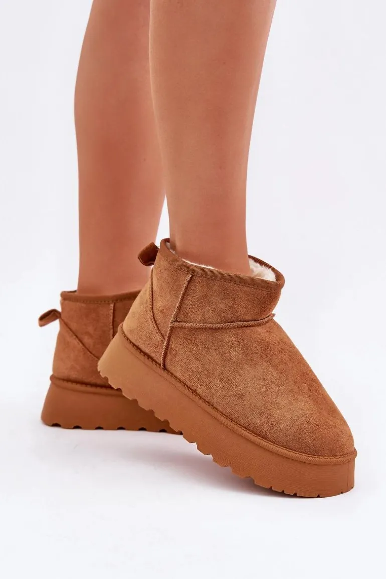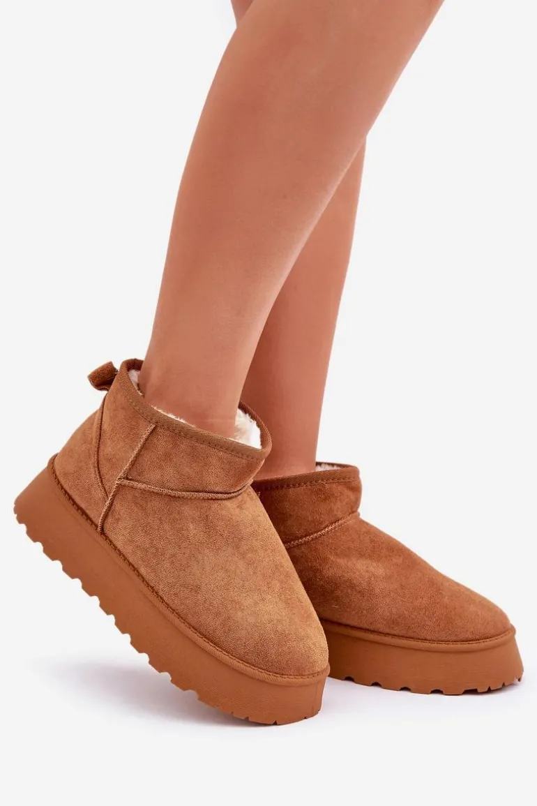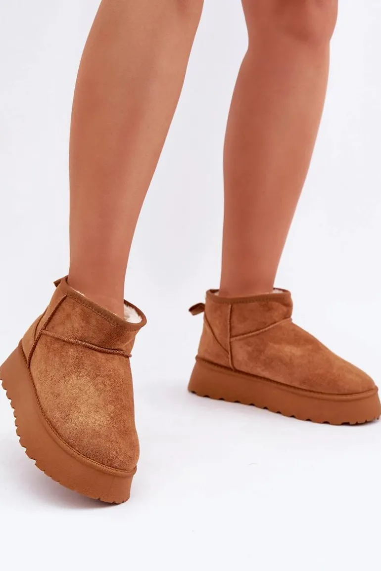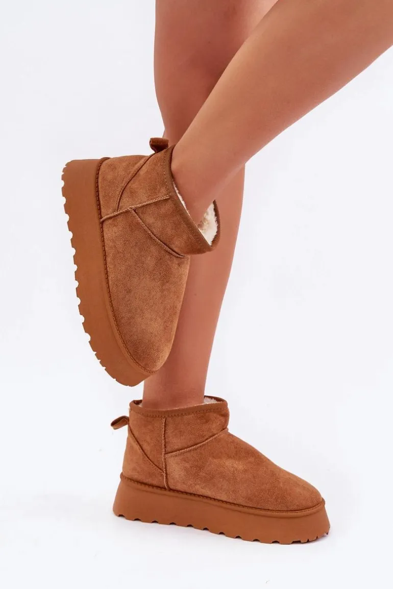 Stylowe śniegowce damskie wykonane z eko zamszu, które zapewnią komfort i ciepło w chłodne dni. Osadzone na modnej platformie, idealnie izolują od zimnego podłoża. Wnętrze ocieplane miękkim futerkiem, które zapewni ciepło w mroźne dni. Doskonałe połączenie wygody i stylowego wyglądu na zimowe dni. Przy wyborze rozmiaru prosimy kierować tabelą rozmiarów.