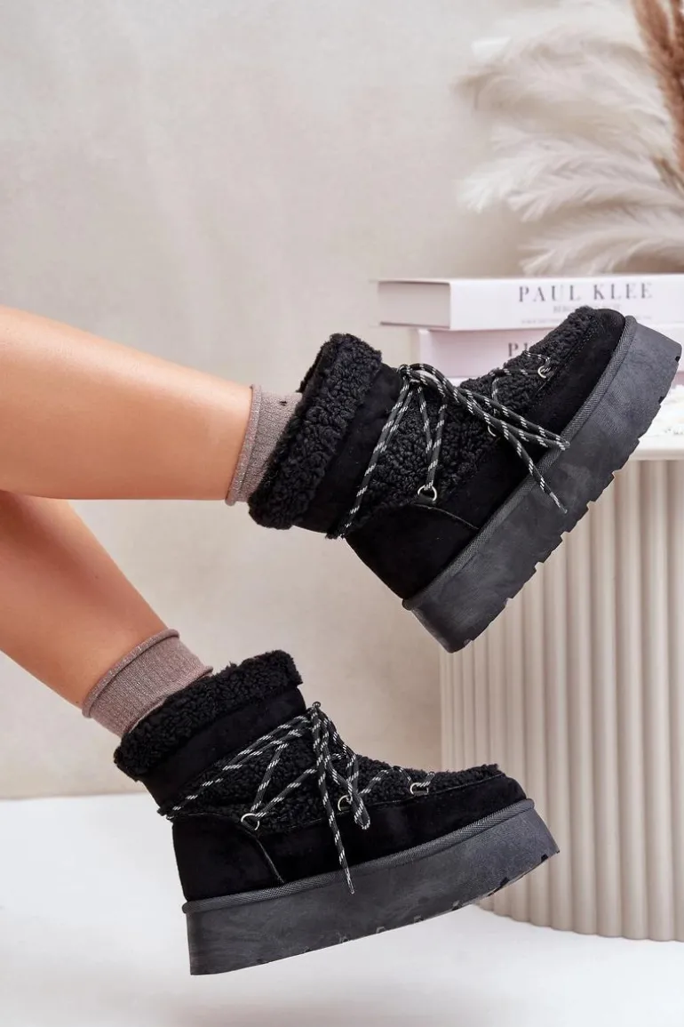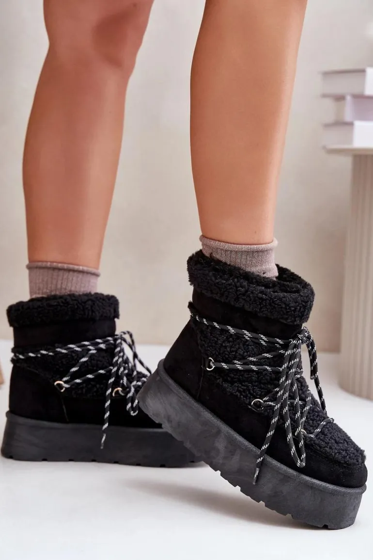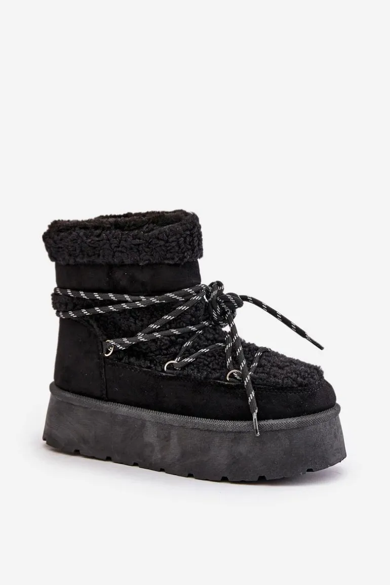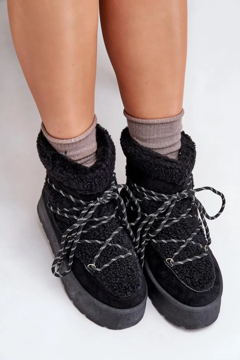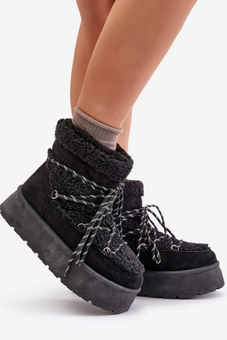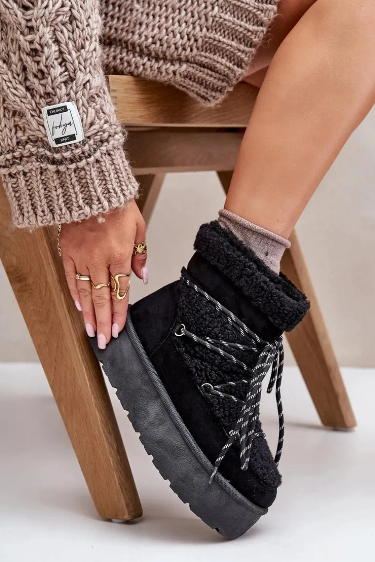Damskie śniegowce na platformie to połączenie modnego designu i funkcjonalności. Wiązanie z przodu, które dodaje im stylowego wyglądu oraz zapewnia idealne dopasowanie. Wnętrze ocieplane miękkim futerkiem, gwarantuje ciepło i komfort nawet w najchłodniejsze dni. Te śniegowce są nie tylko wygodne, ale również idealnie sprawdzą się w zimowych stylizacjach. Przy wyborze rozmiaru prosimy sugerować się tabelą rozmiarów.