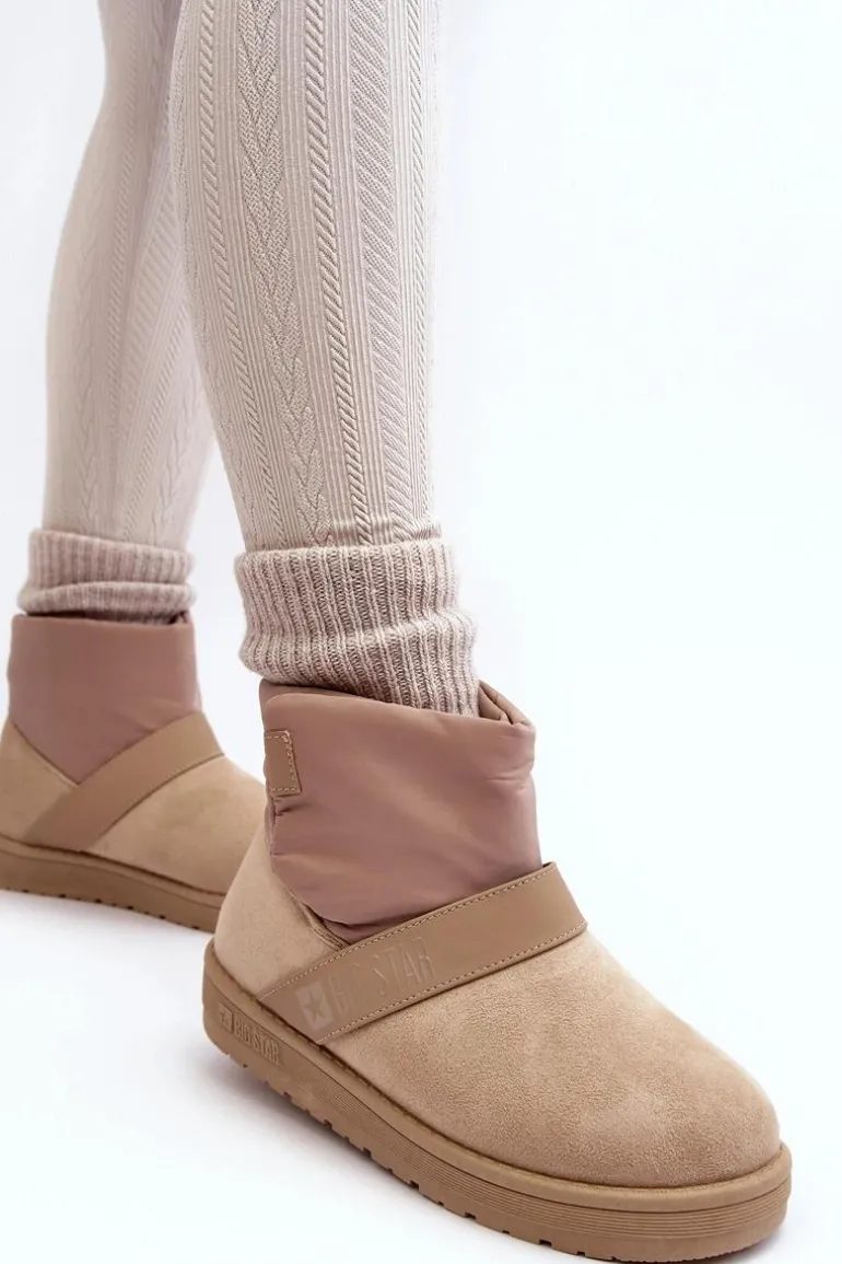 Ciepłe i modne śniegowce od marki Big Star zostały wykonane z materiału tekstylnego. Osadzone na platformie z gumowego tworzywa. Wnętrze ocieplone grubym futerkiem. Klasyczny fason, który pasuje do wielu stylizacji. Cholewka zapinana na rzep. Dodatkowo zapiętek jest usztywniony. Ten wygodny i ciepły model powinien być Twój! Przy wyborze rozmiaru prosimy sugerować się tabelą rozmiarów.