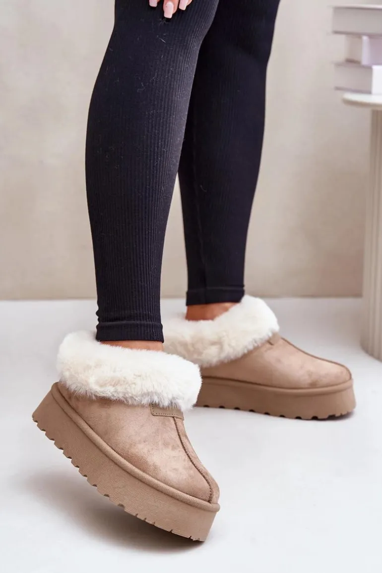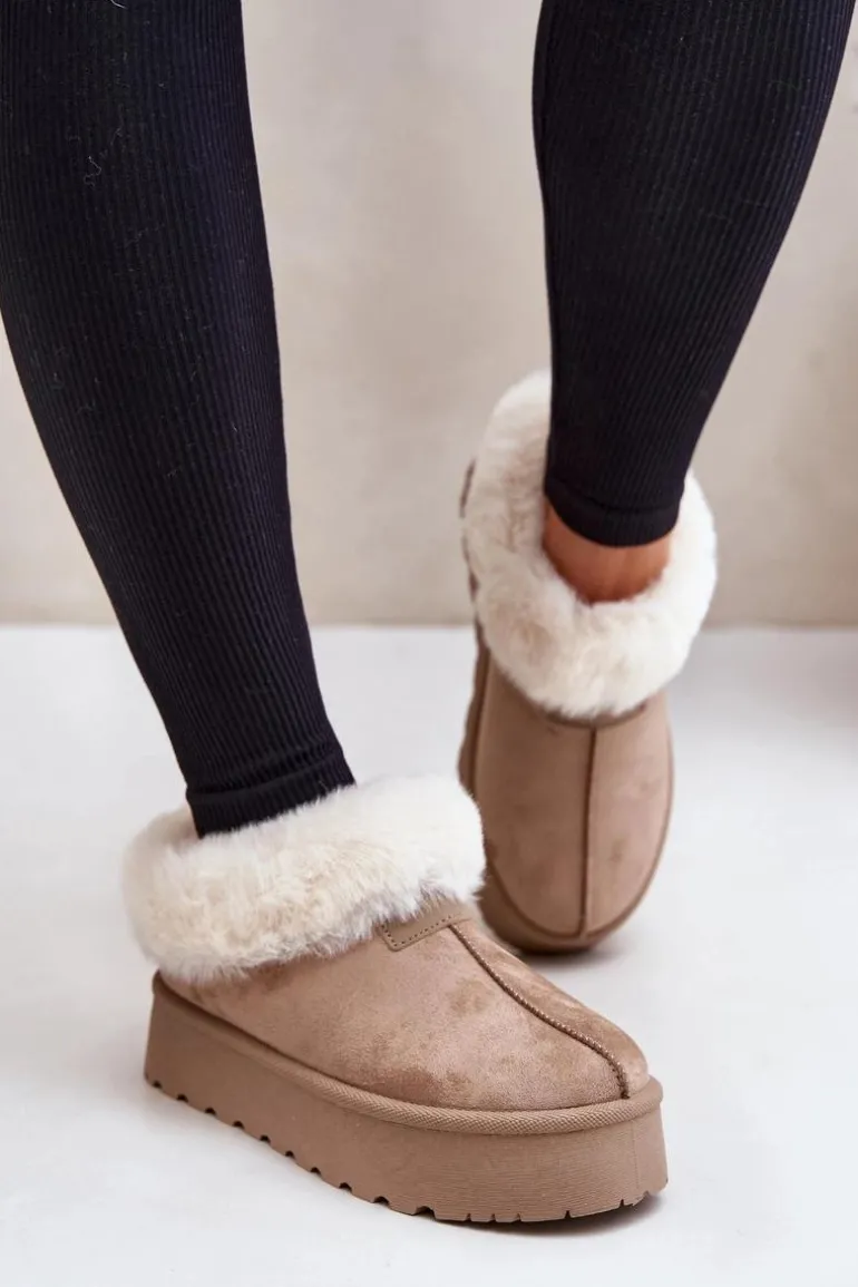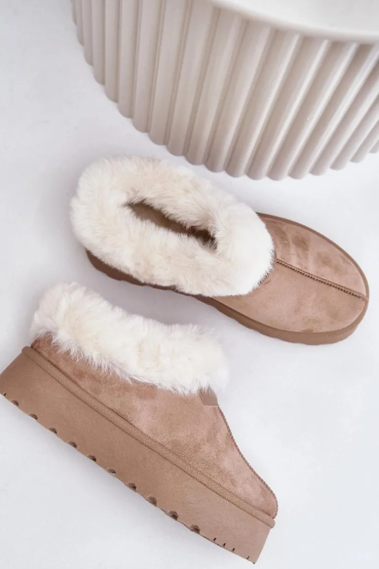 Śniegowce Z Niską Cholewką Z Futerkiem Na Platformie Eko Zamszowe Ciemnobeżowe Neathoria