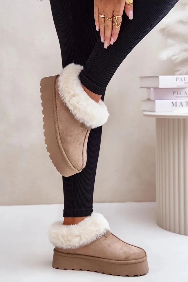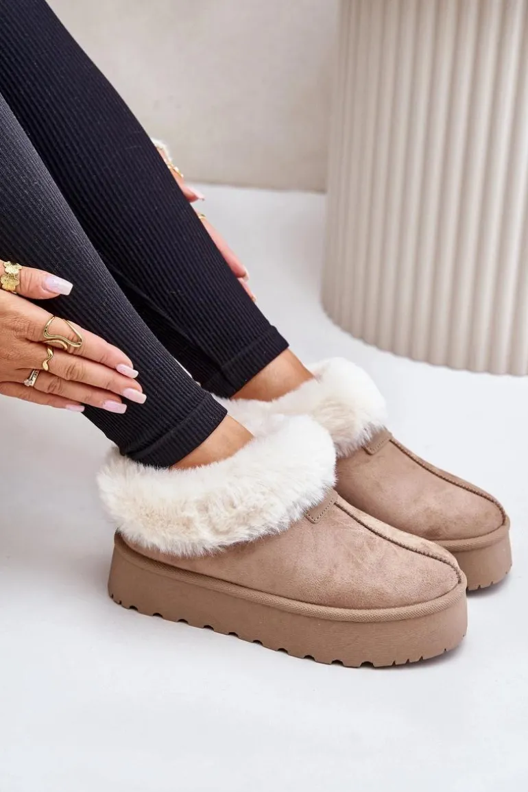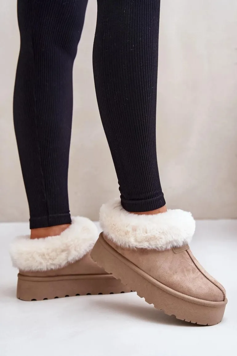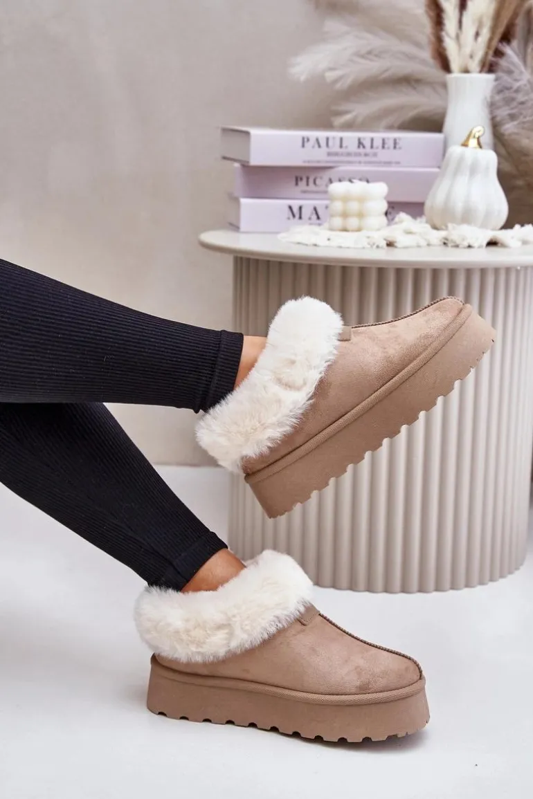 Śniegowce Z Niską Cholewką Z Futerkiem Na Platformie Eko Zamszowe Ciemnobeżowe Neathoria