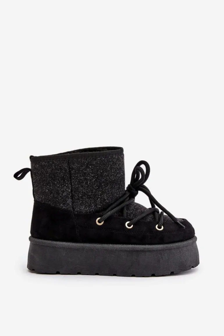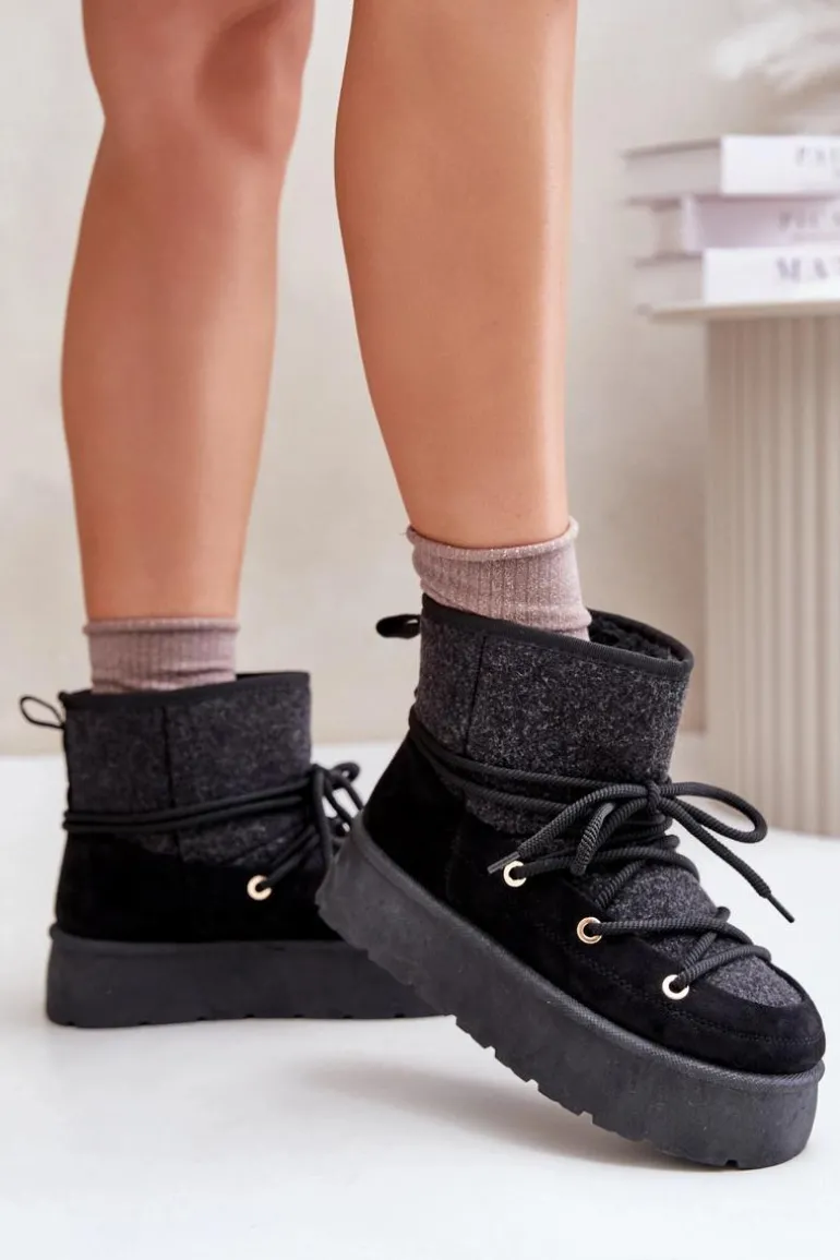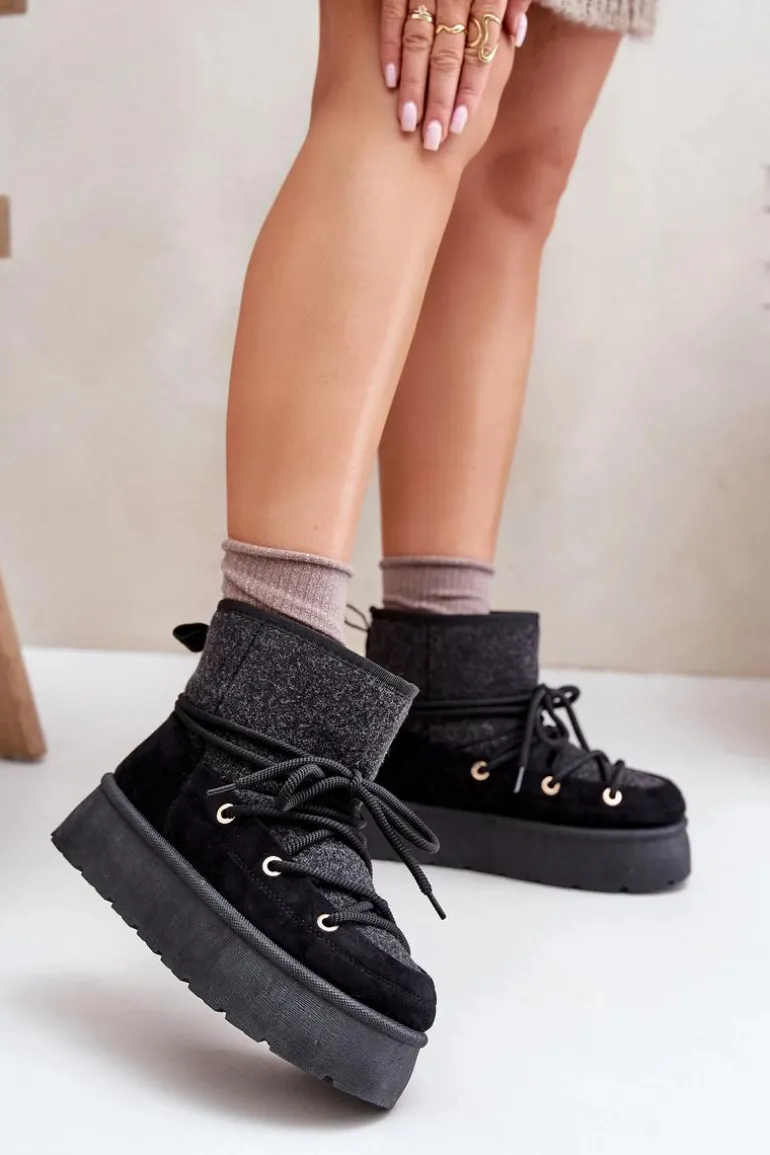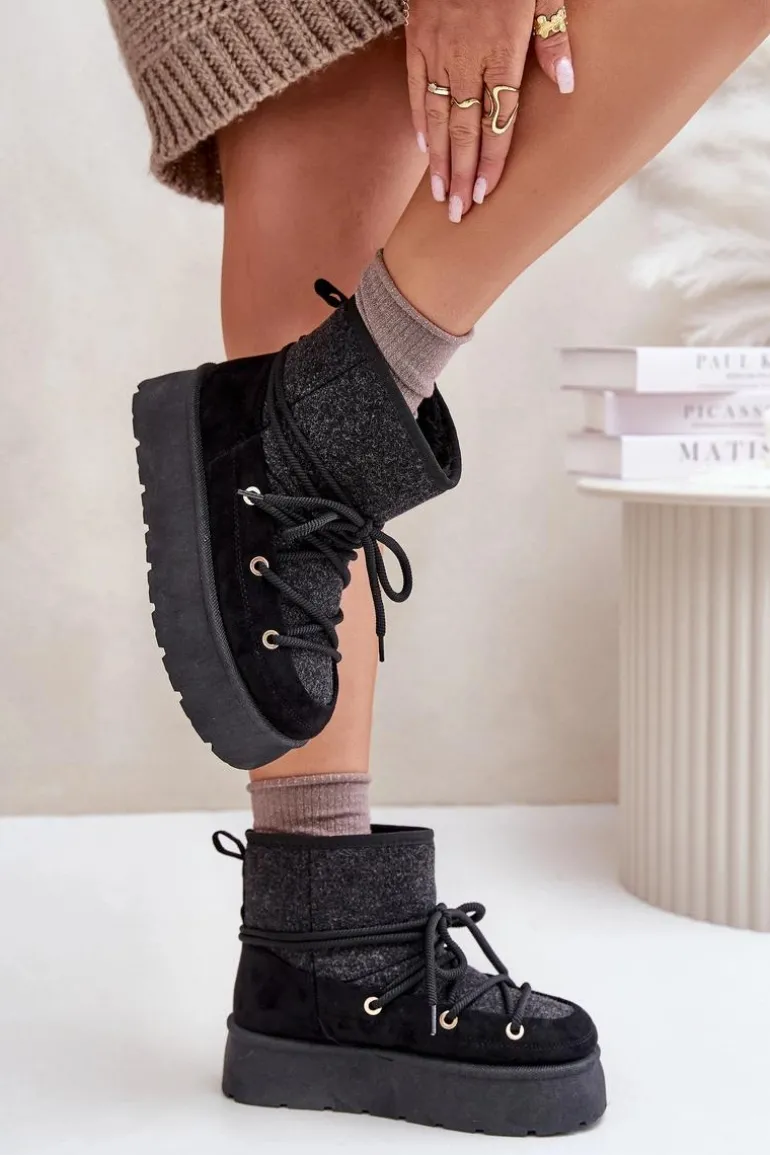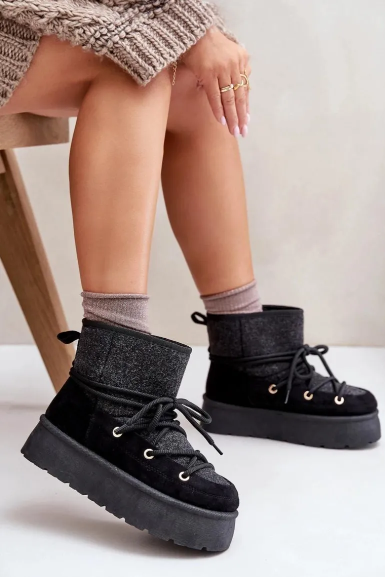 Stylowe śniegowce na platformie to idealne połączenie mody i komfortu. Posiadają praktyczne wiązanie z przodu, które zapewnia dobre dopasowanie do stopy. Wnętrze ocieplane futerkiem gwarantuje ciepło w mroźne dni. Wygodne i ciepłe, świetnie sprawdzą się zarówno na co dzień, jak i podczas zimowych spacerów. Przy wyborze rozmiaru prosimy sugerować się tabelą rozmiarów.