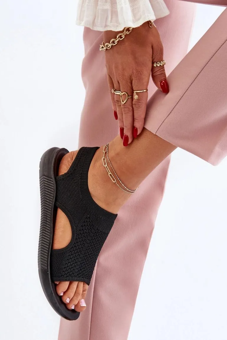 Klasyczne sandały damskie w sportowym stylu. Wykonane z materiału tekstylnego. Osadzone na podeszwie z gumowego tworzywa. Pięta odkryta z paskiem, który zwiększy stabilizacje podczas chodzenia. Idealne na ciepłe dni! Przy wyborze rozmiaru prosimy kierować się tabelą rozmiarów.