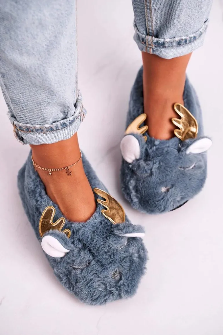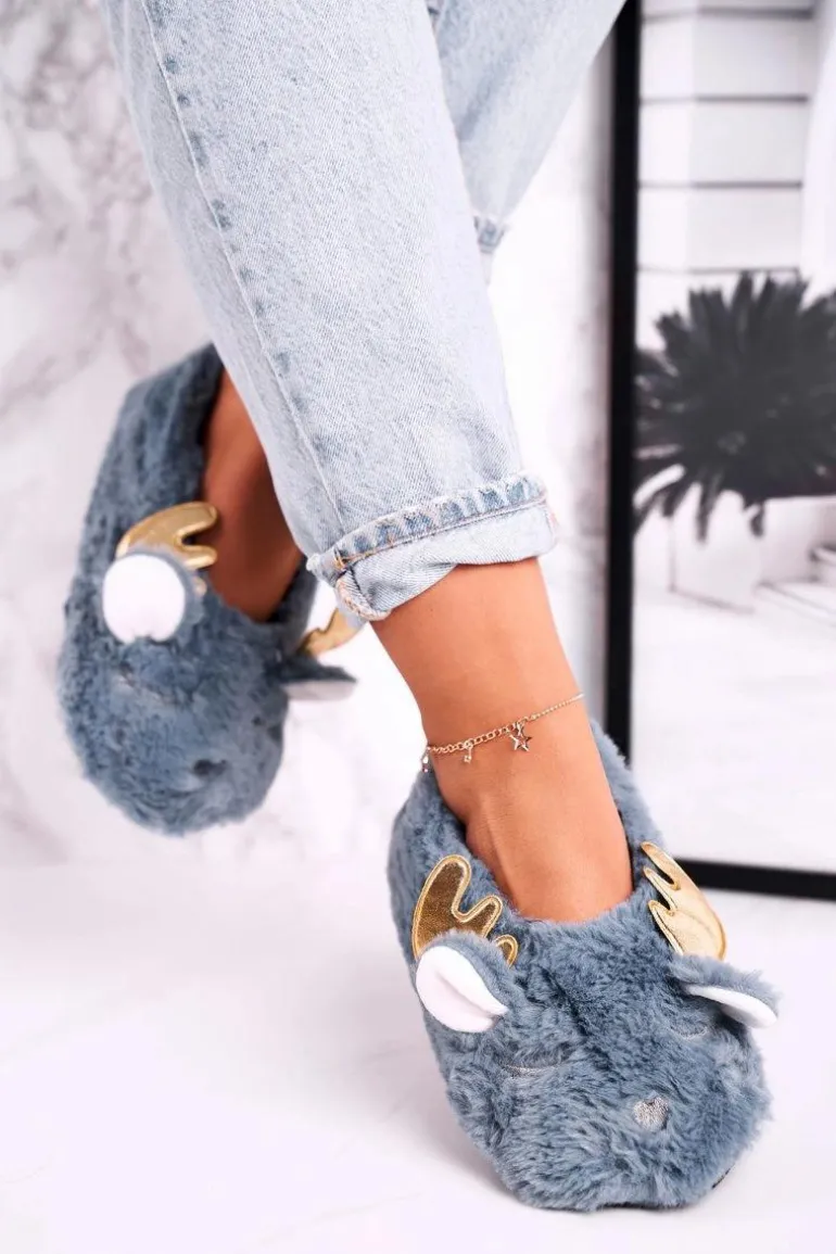 Świąteczne Ocieplane Futrzane Papcie Niebieskie Jingle Bells