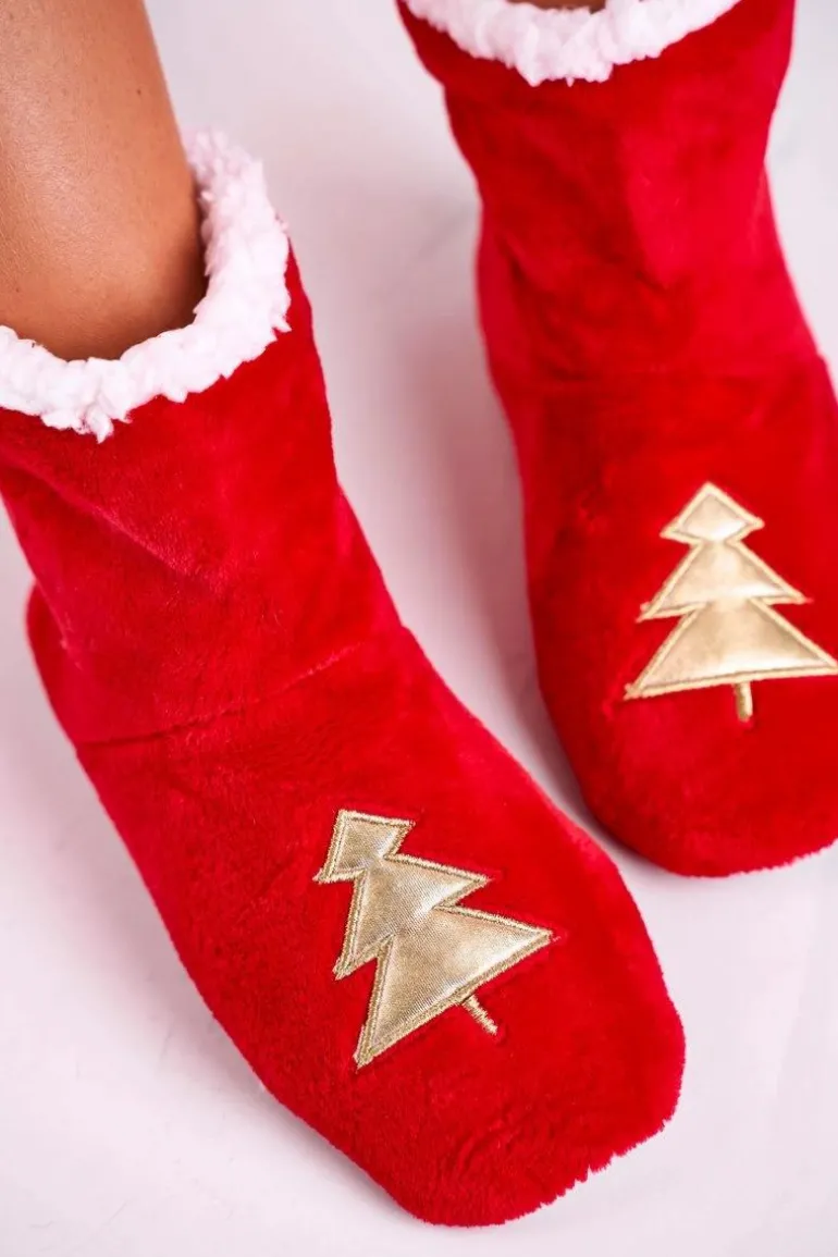 Świąteczne Papcie Z Choinką Ocieplone Kożuszkiem Holly