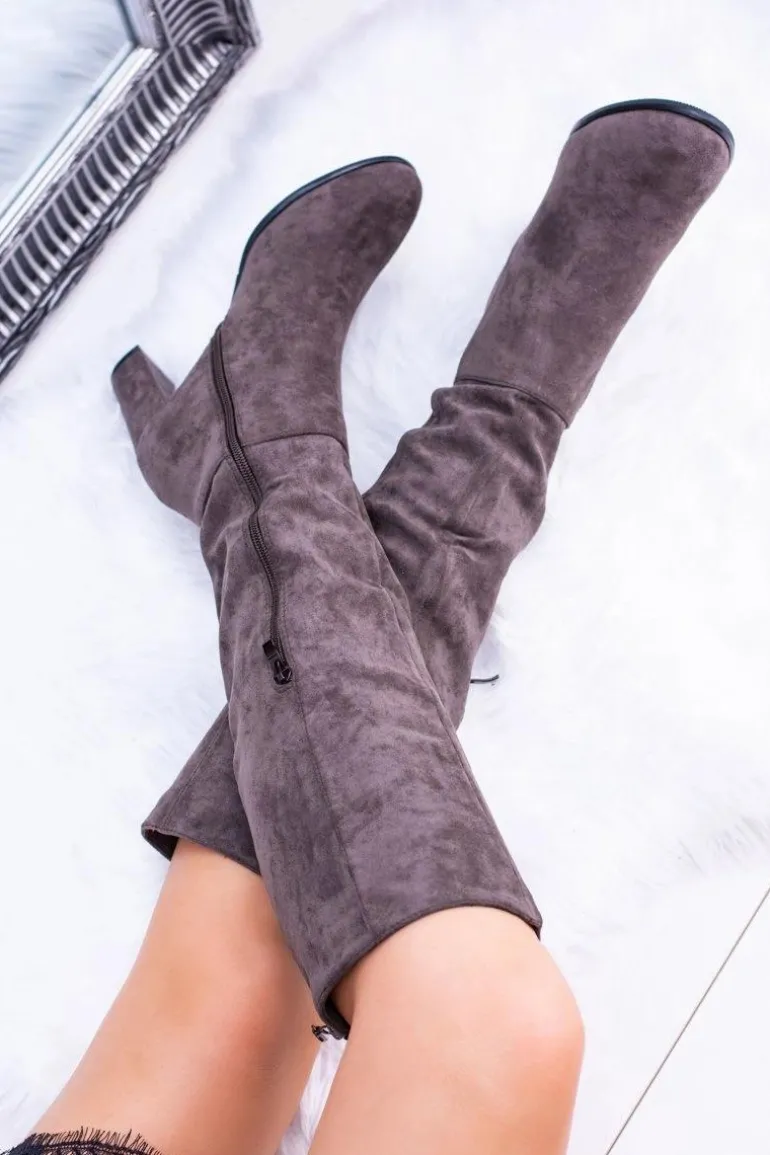 Szare Damskie Kozaki Zamszowe Sergio Leone KZ271