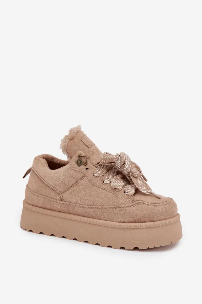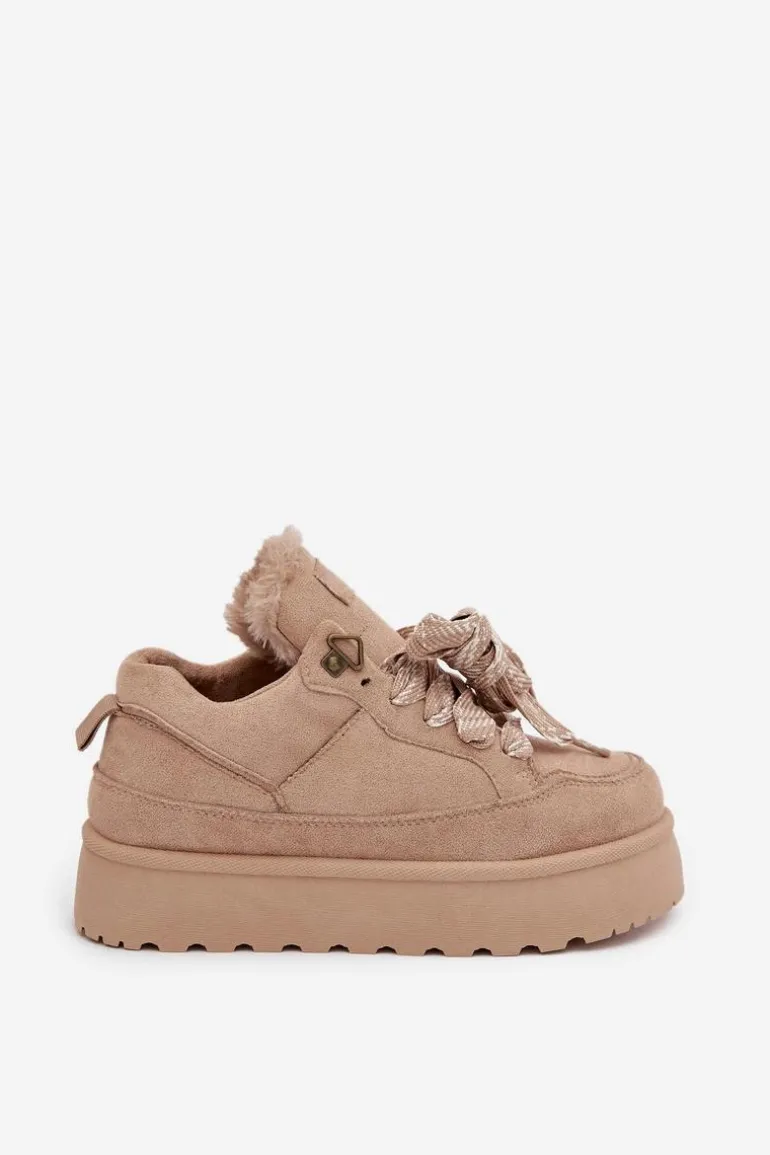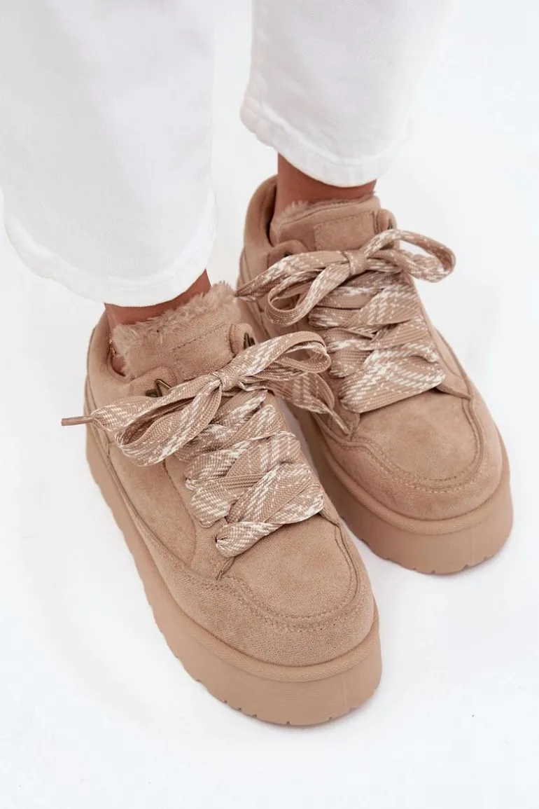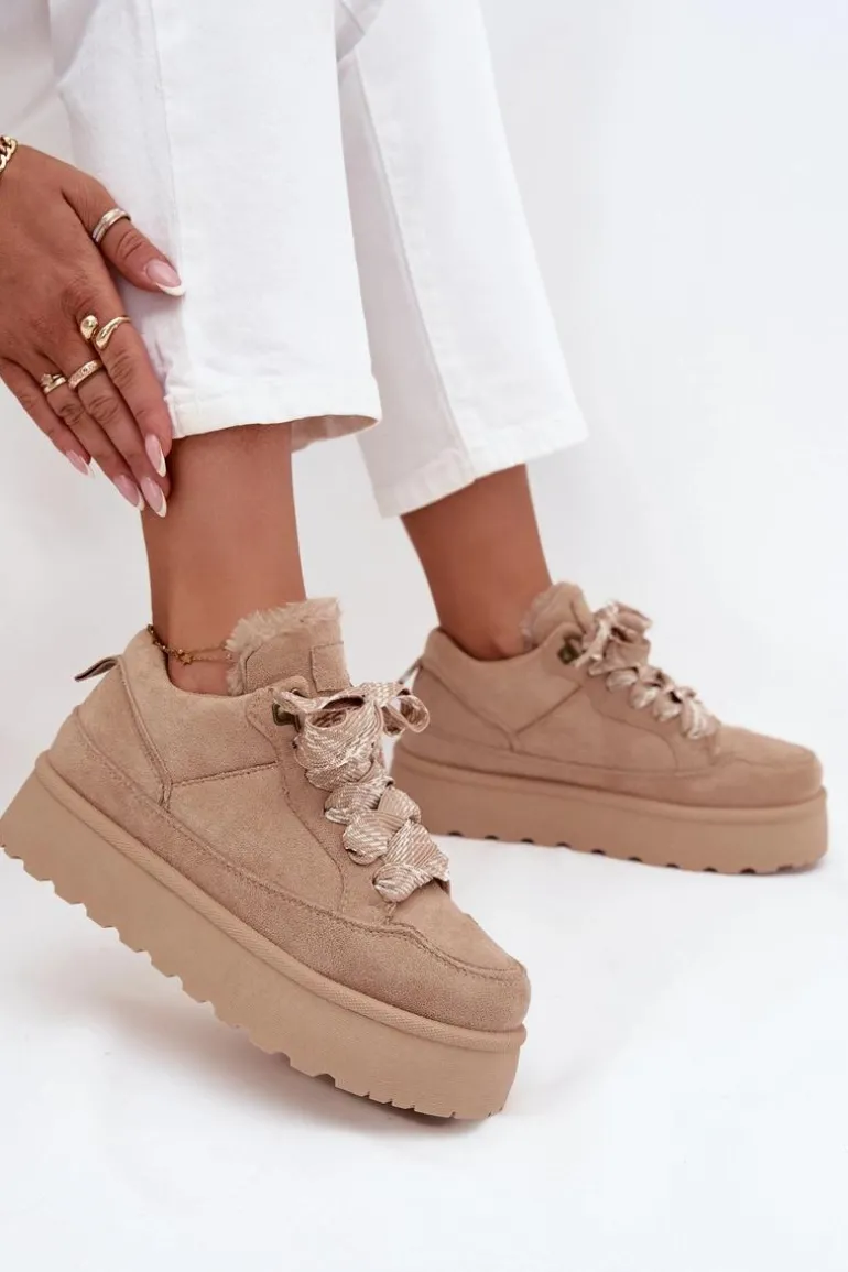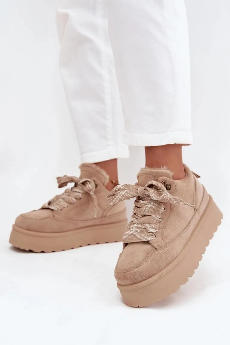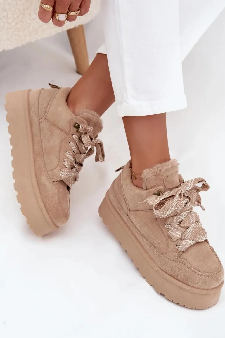 Śniegowce damskie w sportowym stylu wykonane z miękkiego eko zamszu to idealny wybór na zimowe dni. Osadzone na solidnej platformie skutecznie izolują od chłodu, a ocieplenie miękkim futerkiem zapewnia komfort i ciepło. Sznurowany fason pozwala na dobre dopasowanie do stopy, podkreślając jednocześnie casualowy, miejski charakter butów. To praktyczny i stylowy model, który doskonale sprawdzi się w codziennych zimowych stylizacjach. Przy wyborze rozmiaru prosimy sugerować się tabelą rozmiarów.