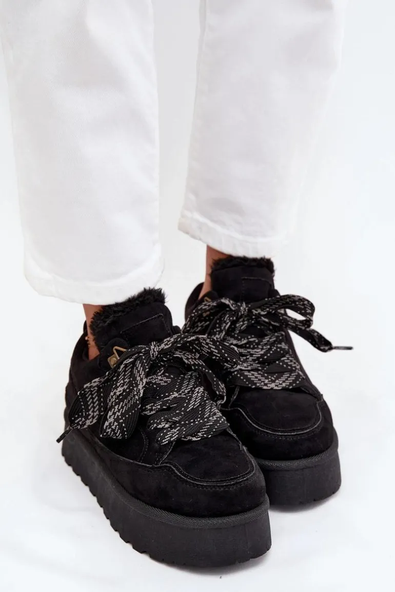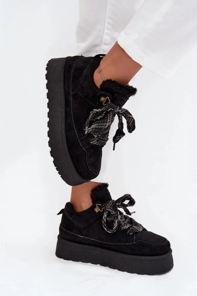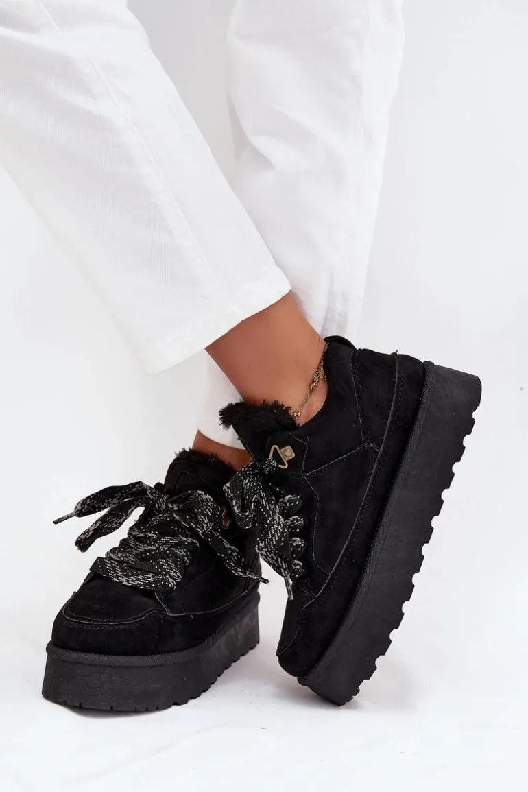 Śniegowce damskie w sportowym stylu wykonane z miękkiego eko zamszu to idealny wybór na zimowe dni. Osadzone na solidnej platformie skutecznie izolują od chłodu, a ocieplenie miękkim futerkiem zapewnia komfort i ciepło. Sznurowany fason pozwala na dobre dopasowanie do stopy, podkreślając jednocześnie casualowy, miejski charakter butów. To praktyczny i stylowy model, który doskonale sprawdzi się w codziennych zimowych stylizacjach. Przy wyborze rozmiaru prosimy sugerować się tabelą rozmiarów.