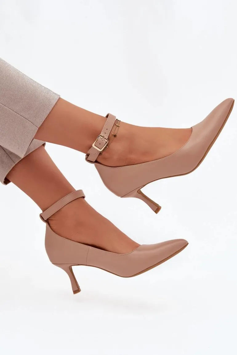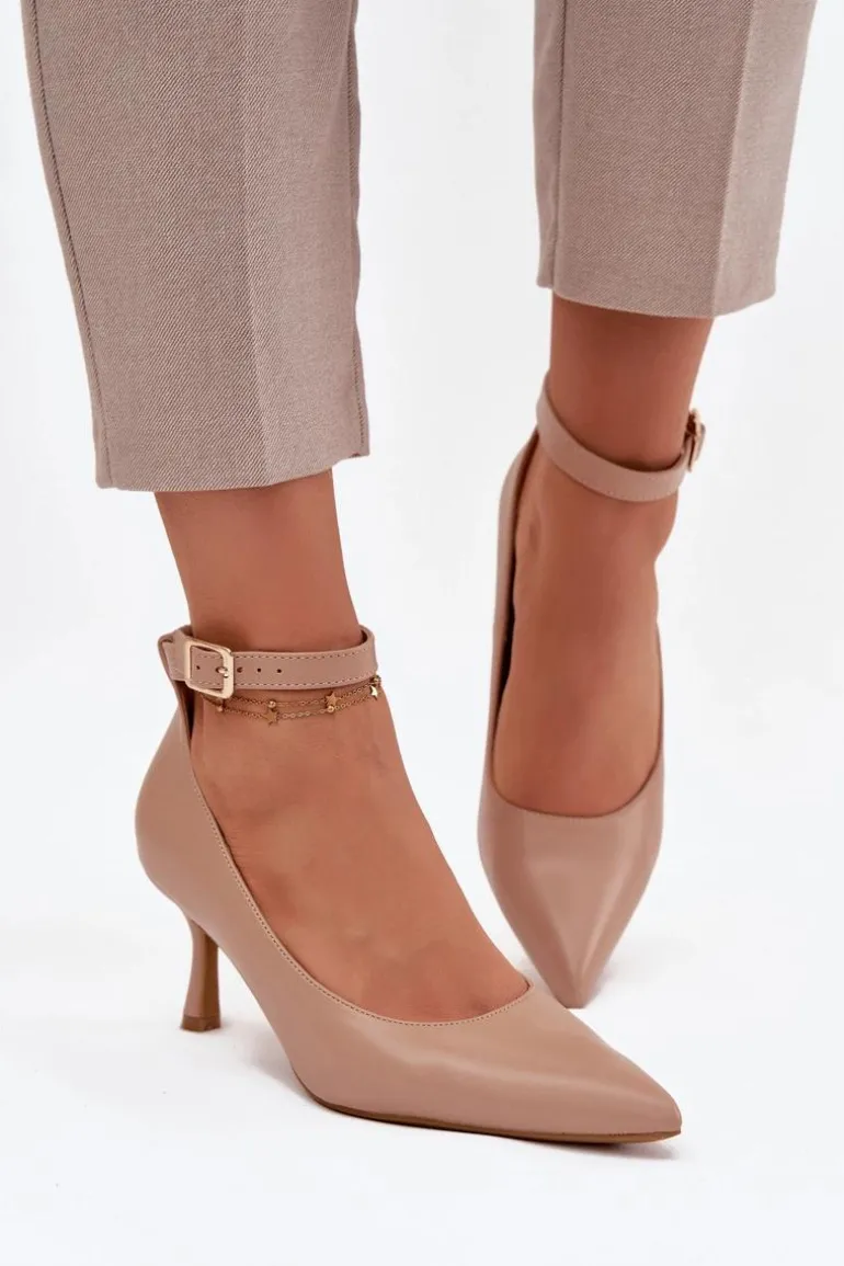 Szpilki Czółenka Z Paskiem Ciemnobeżowe Perrine