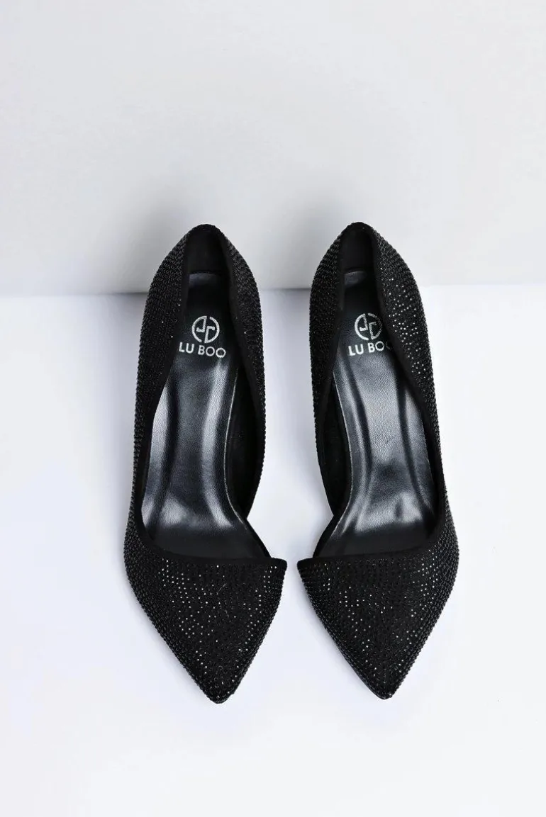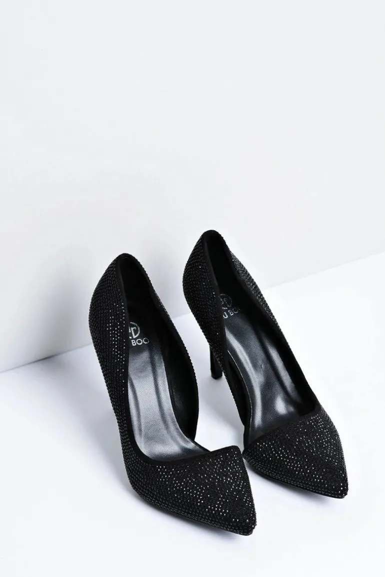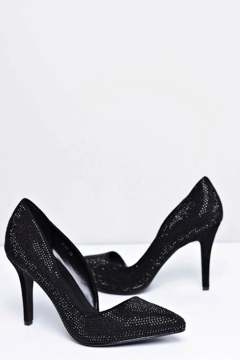 Szpilki Damskie Czarne Zamszowe Cyrkonie Asymetryczne Santee