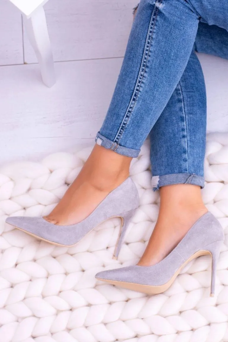 Szpilki damskie Lu Boo Zamszowe Szare W Szpic Fione