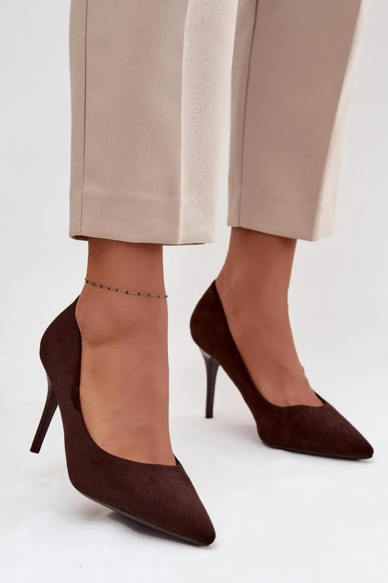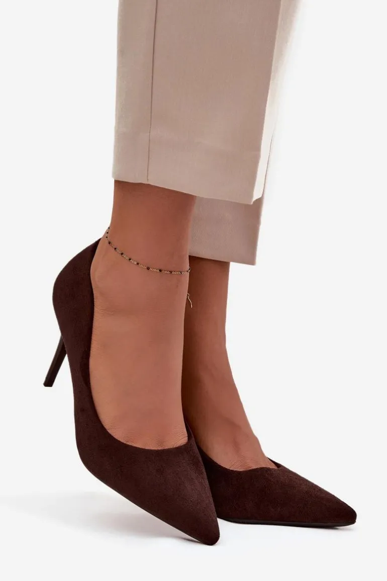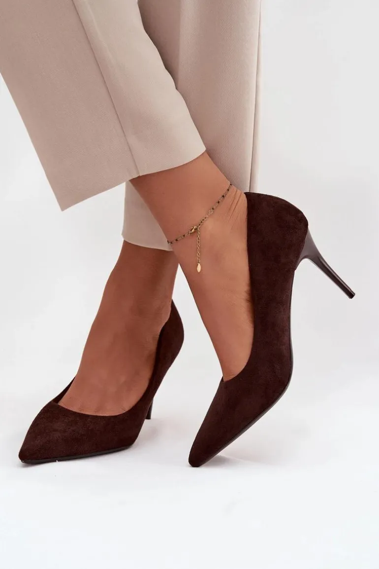 Szpilki damskie z eko zamszu to klasyka, która nigdy nie wychodzi z mody. Wykonane z przyjemnego w dotyku, eleganckiego materiału doskonale podkreślają kobiecy styl i dodają szyku każdej stylizacji. Smukłe, szpiczaste noski optycznie wydłużają nogi, a subtelna linia buta sprawia, że prezentują się niezwykle lekko i zgrabnie. Dzięki miękkiej wkładce szpilki są nie tylko efektowne, ale także wygodne – idealne zarówno na specjalne okazje, jak i do codziennych eleganckich zestawów. Obcas wysmukla sylwetkę, a jednocześnie zapewnia stabilność podczas chodzenia. Te buty będą doskonałym wyborem do sukienki, spódnicy czy eleganckich spodni, świetnie sprawdzą się na przyjęciach, weselach, spotkaniach biznesowych czy wieczornych wyjściach.