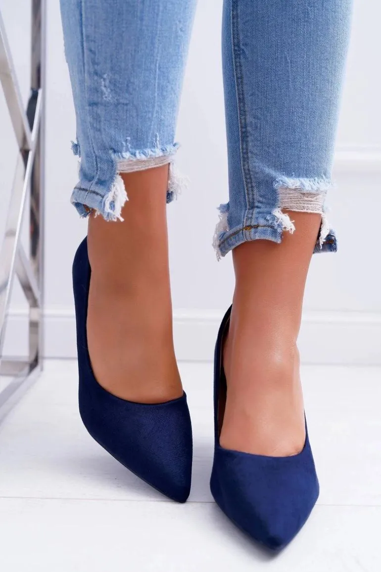 Szpilki Damskie Zamszowe W Szpic Granatowe Cream